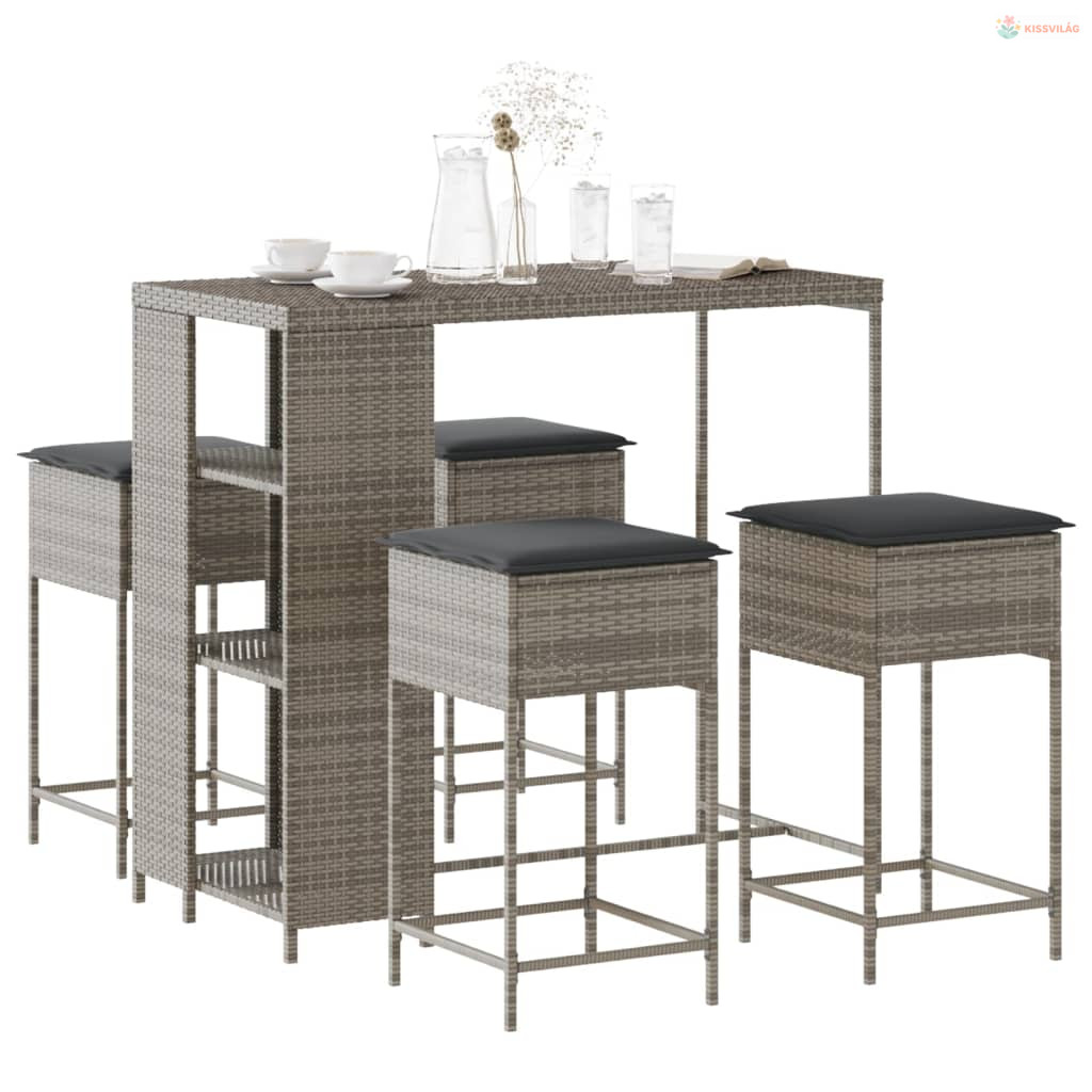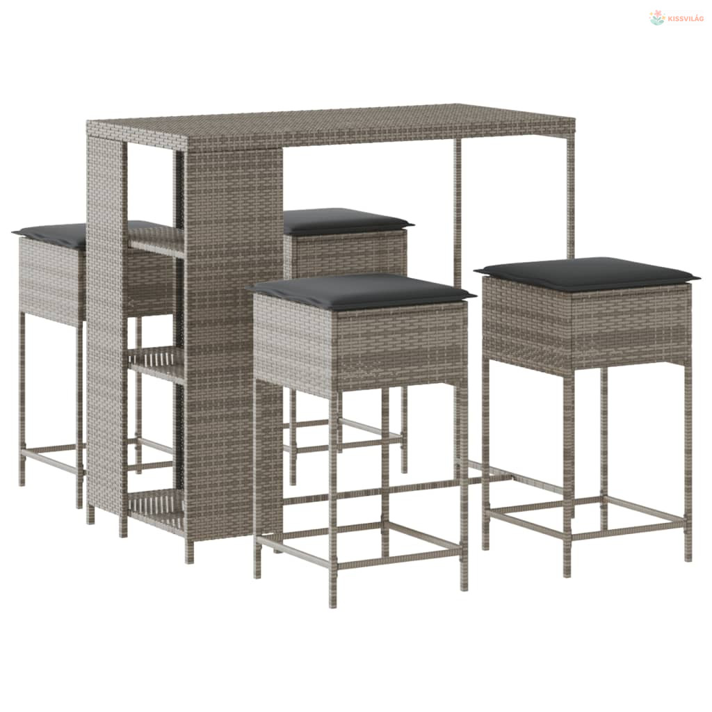5 részes szürke polyrattan kerti bárszett párnákkal
