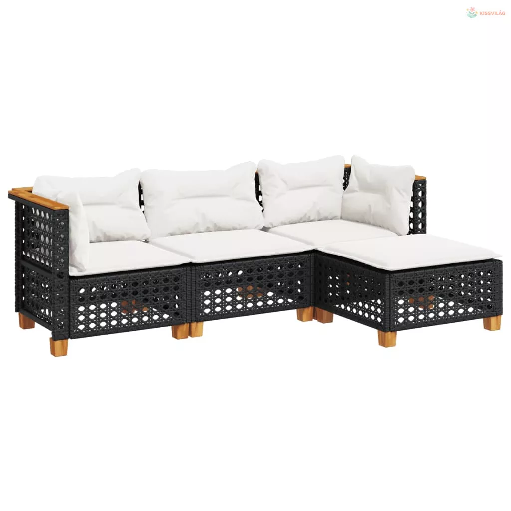 4 részes fekete polyrattan kerti ülőgarnitúra párnákkal