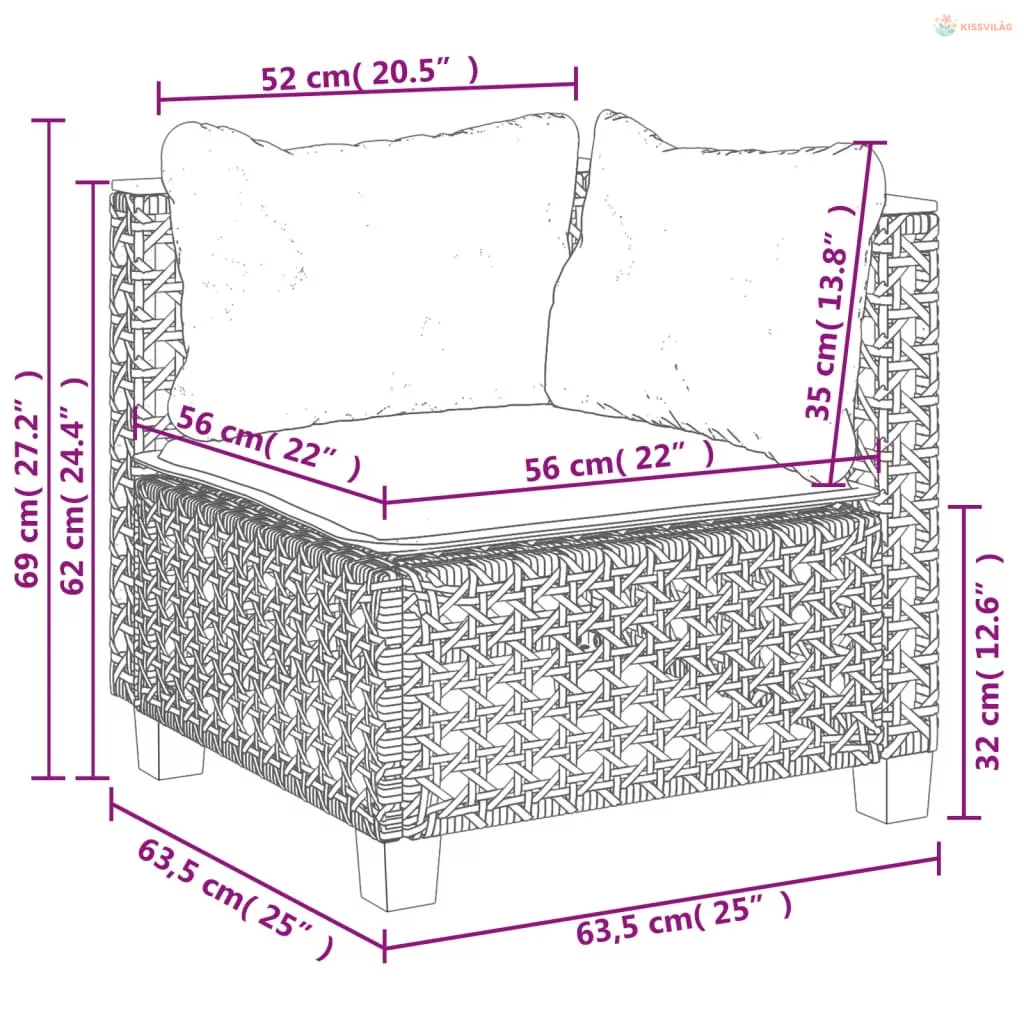• Ülőpárna mérete (középső/lábtartó): 63,5 x 56,5 x 3 cm (Szé x Mé x Va)