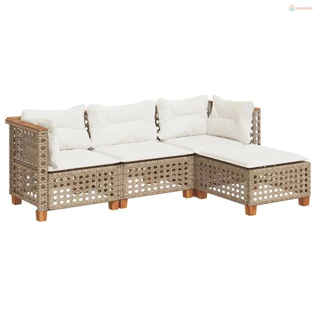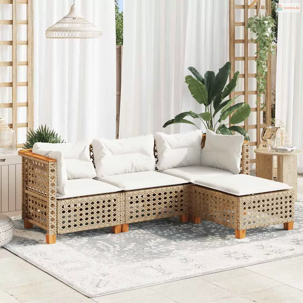 4 részes bézs polyrattan kerti ülőgarnitúra párnákkal