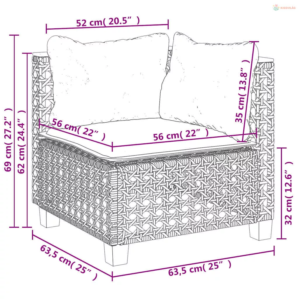 • Ülőfelület magassága a talajtól (párna nélkül): 32 cm