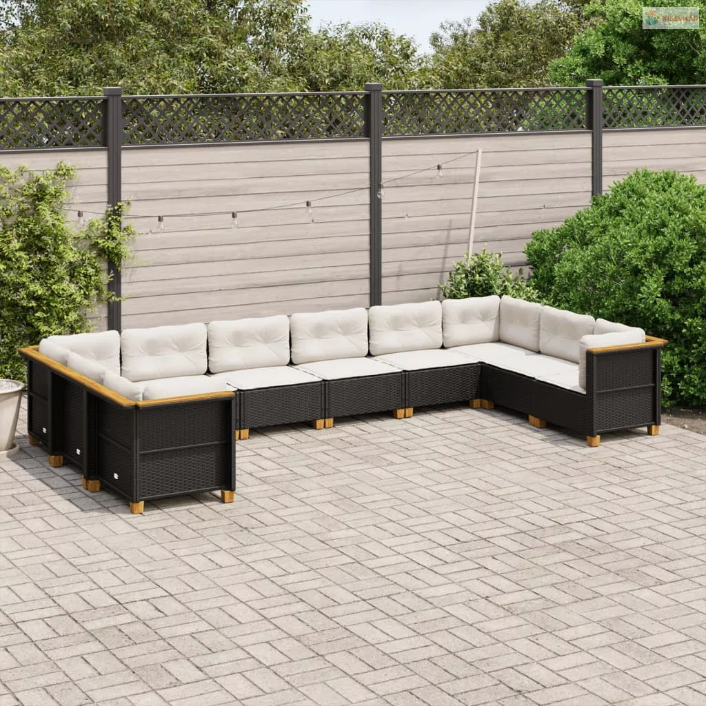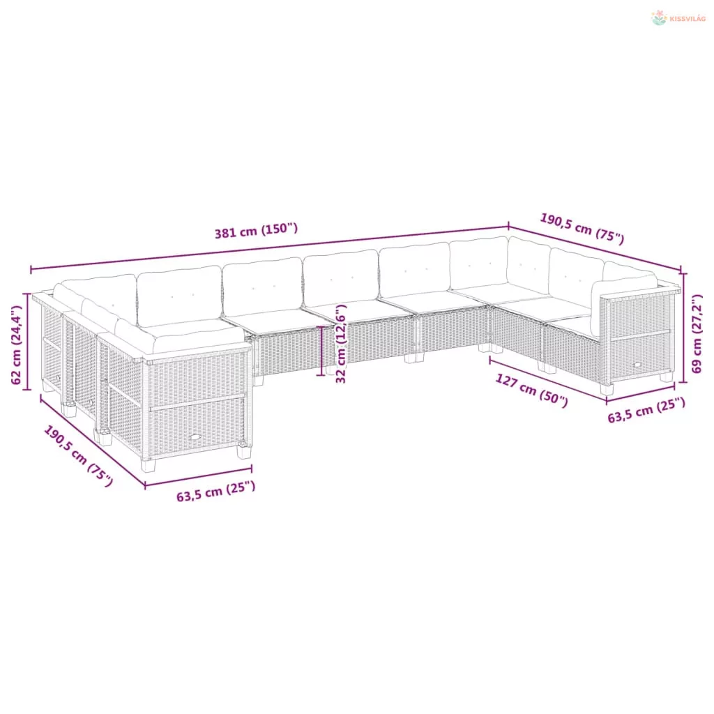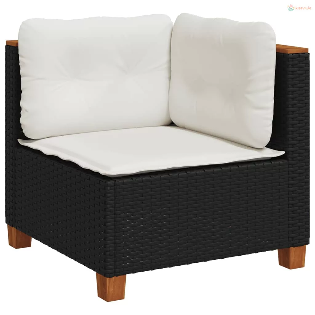 10 részes fekete polyrattan kerti ülőgarnitúra párnákkal