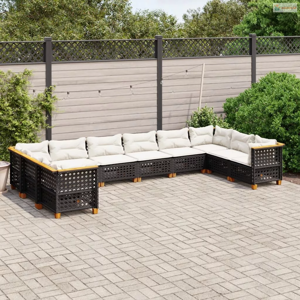 10 részes fekete polyrattan kerti ülőgarnitúra párnákkal
