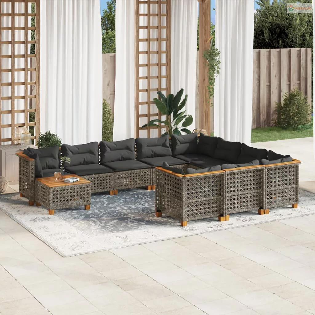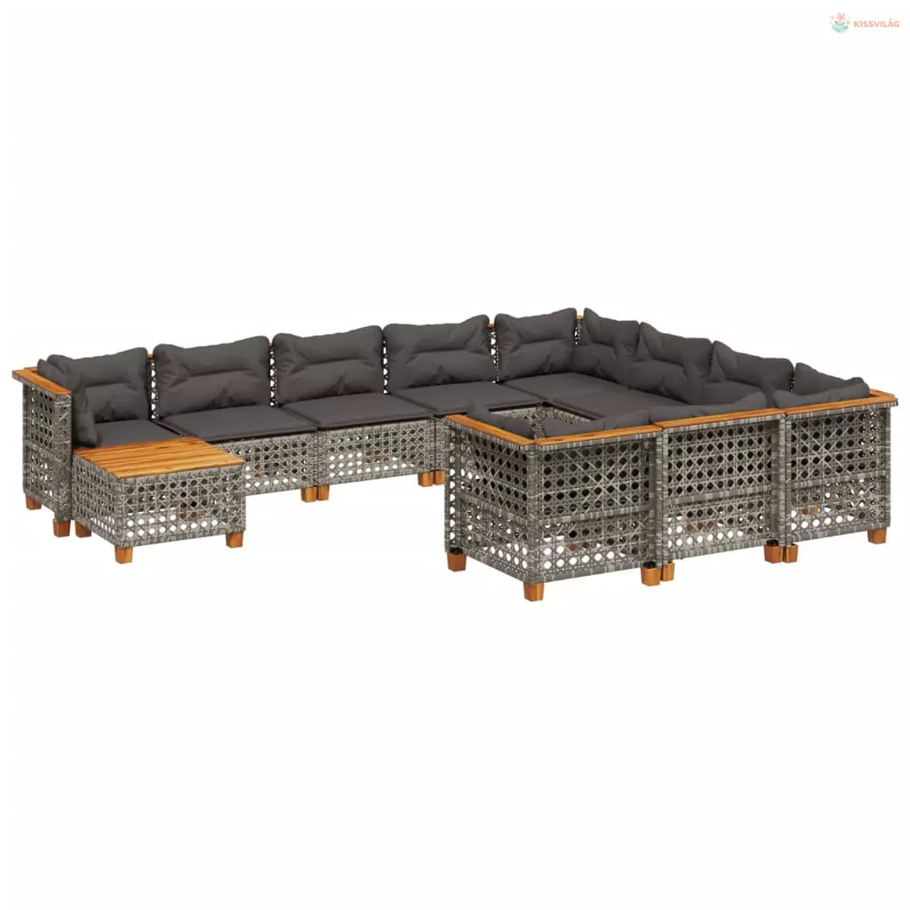 11 részes szürke polyrattan kerti ülőgarnitúra párnákkal
