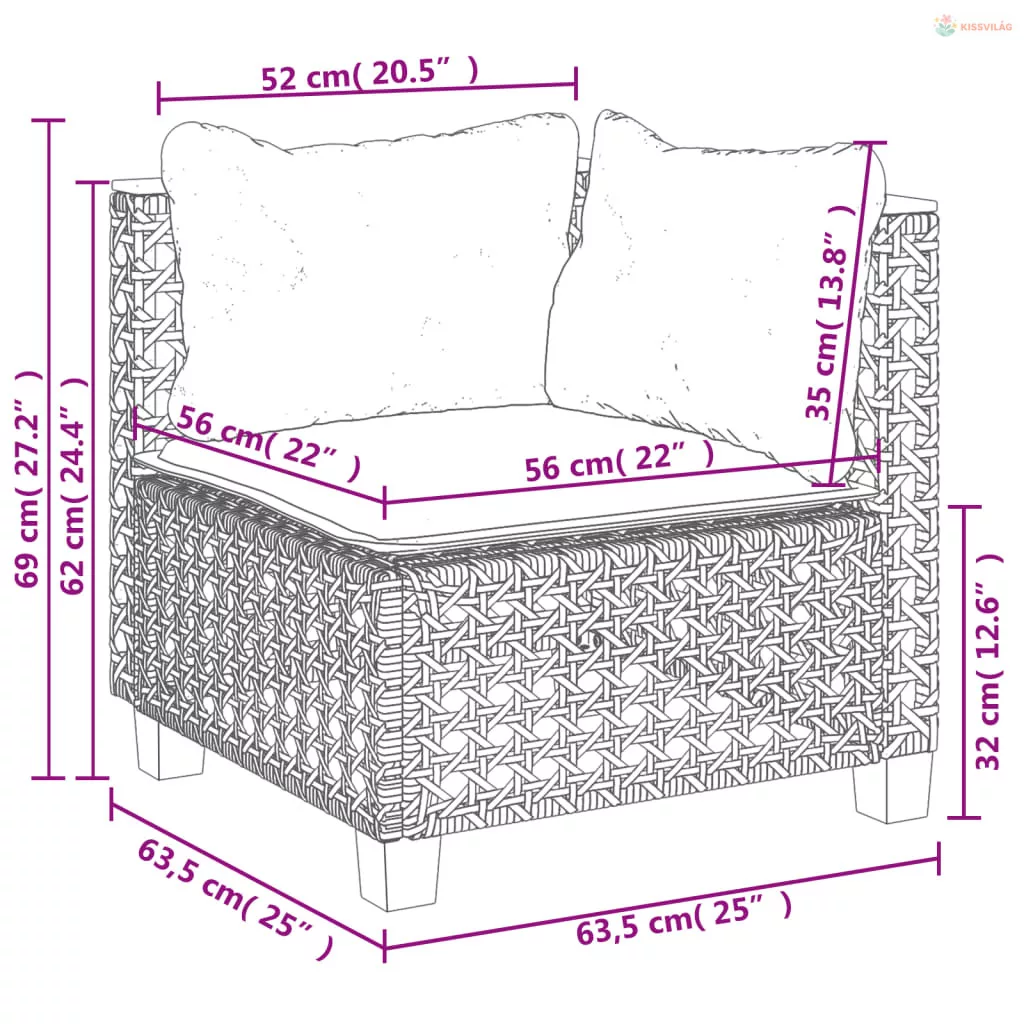 • Ülőpárna mérete (középső): 63,5 x 56,5 x 3 cm (Szé x Mé x Va)