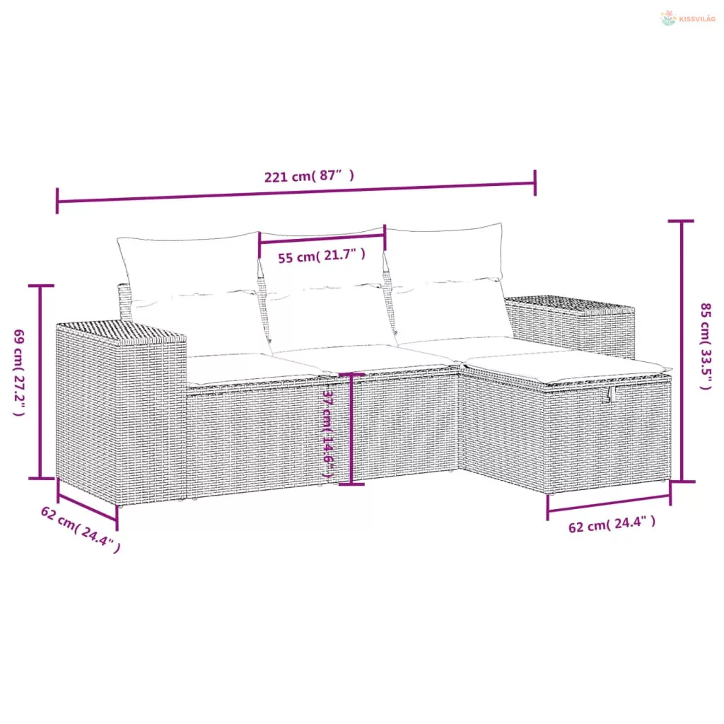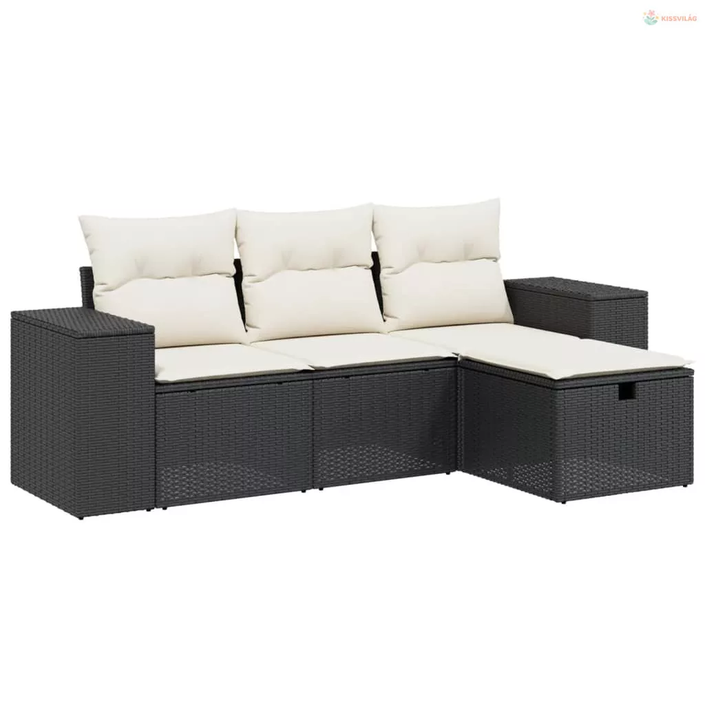 4 részes fekete polyrattan kerti ülőgarnitúra párnákkal