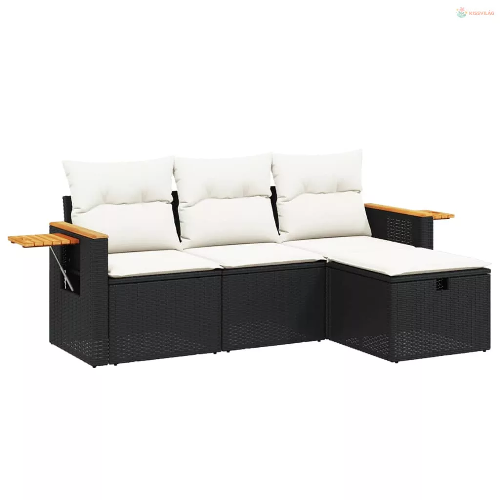 4 részes fekete polyrattan kerti ülőgarnitúra párnákkal
