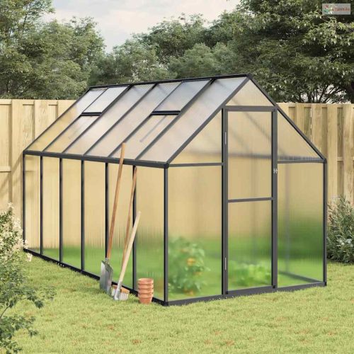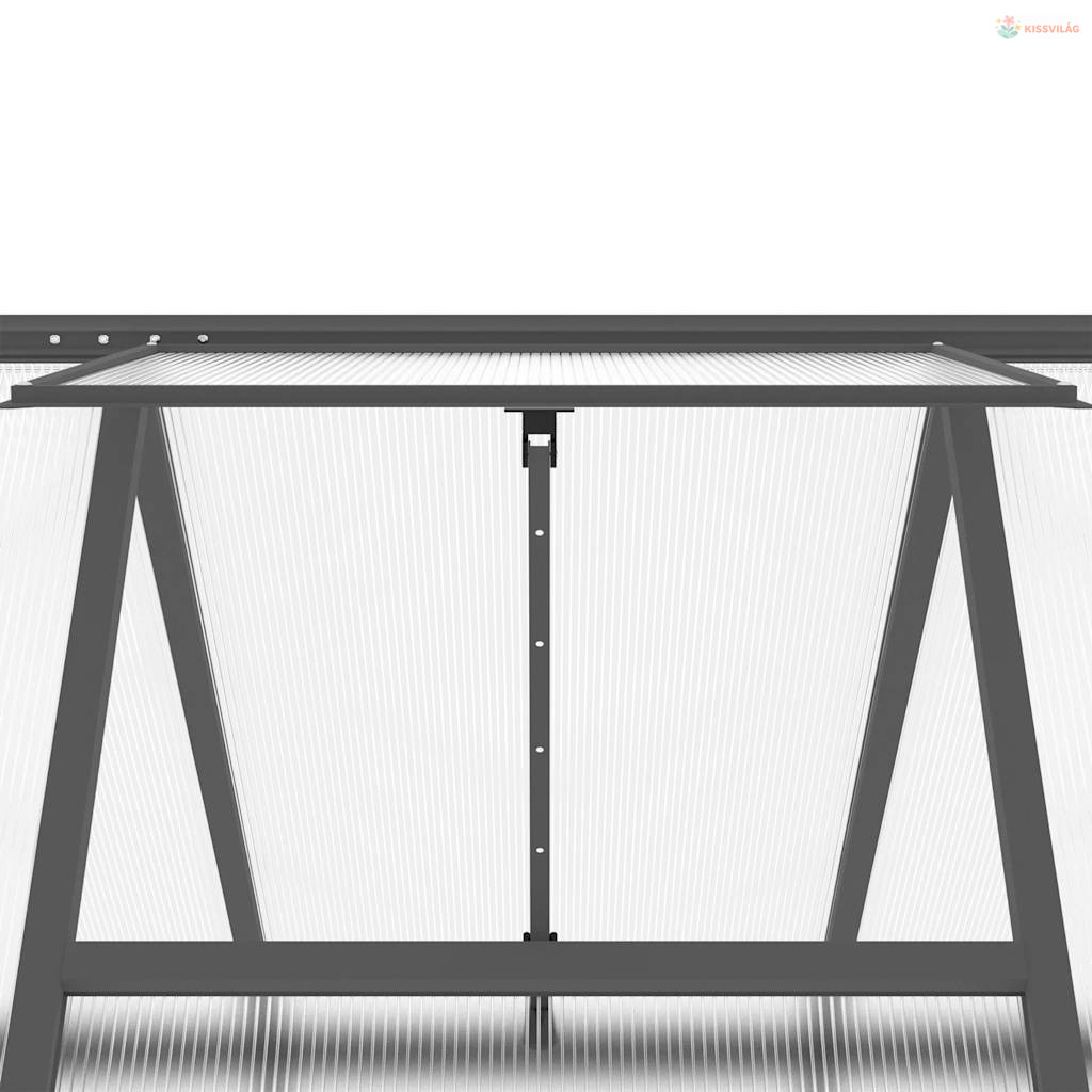 • Időjárásálló és masszív anyag: Az üvegház váza rozsda- és időjárásálló alumíniumból készült a nagy szélállóság és stabilitás érdekében. A lapok UV-álló polikarbonátból készültek, amelyek könnyűek, tartósak, és könnyen karbantarthatók, ellenállnak a szélnek és a hónak.
