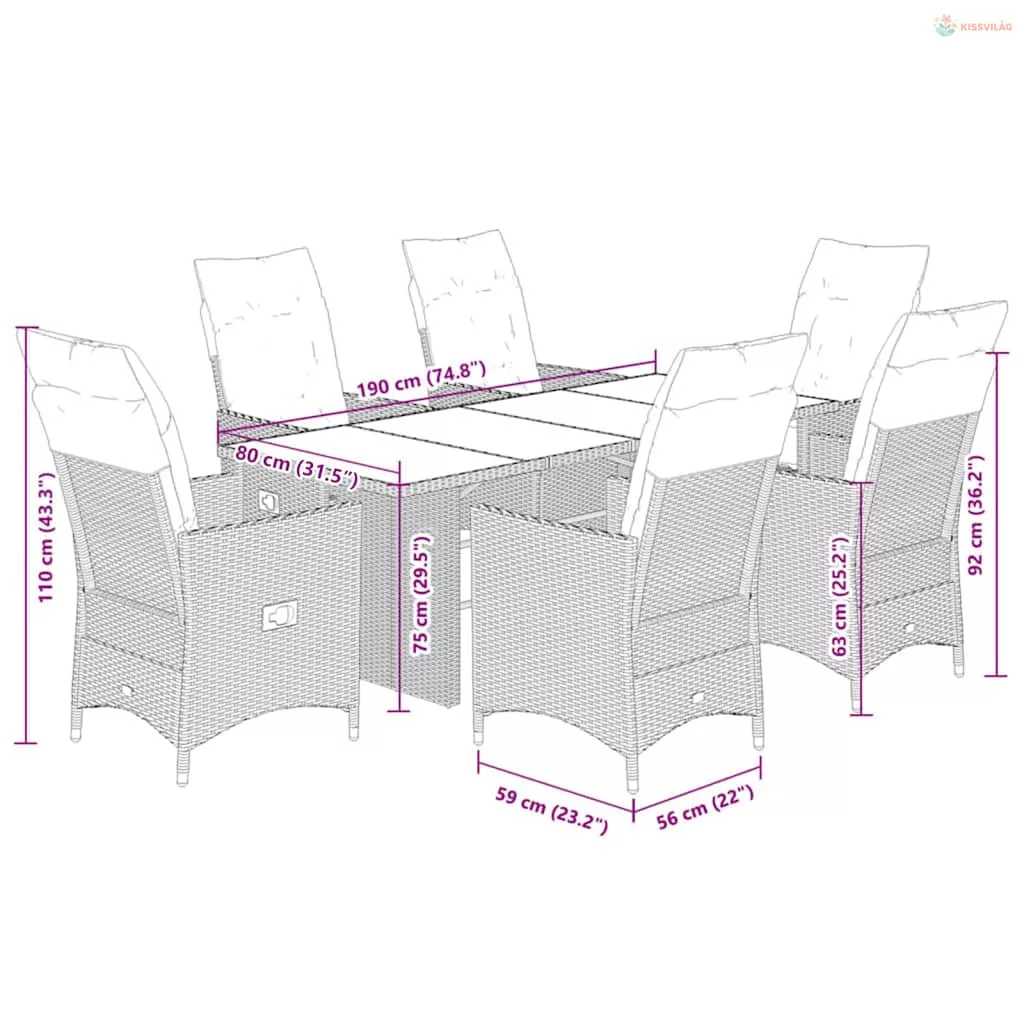 • Anyaga: polietilén rattan, porszórt acélváz, edzett üveg