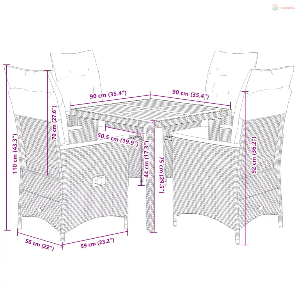 • Mérete: 90 x 90 x 75 cm (Ho x Szé x Ma)