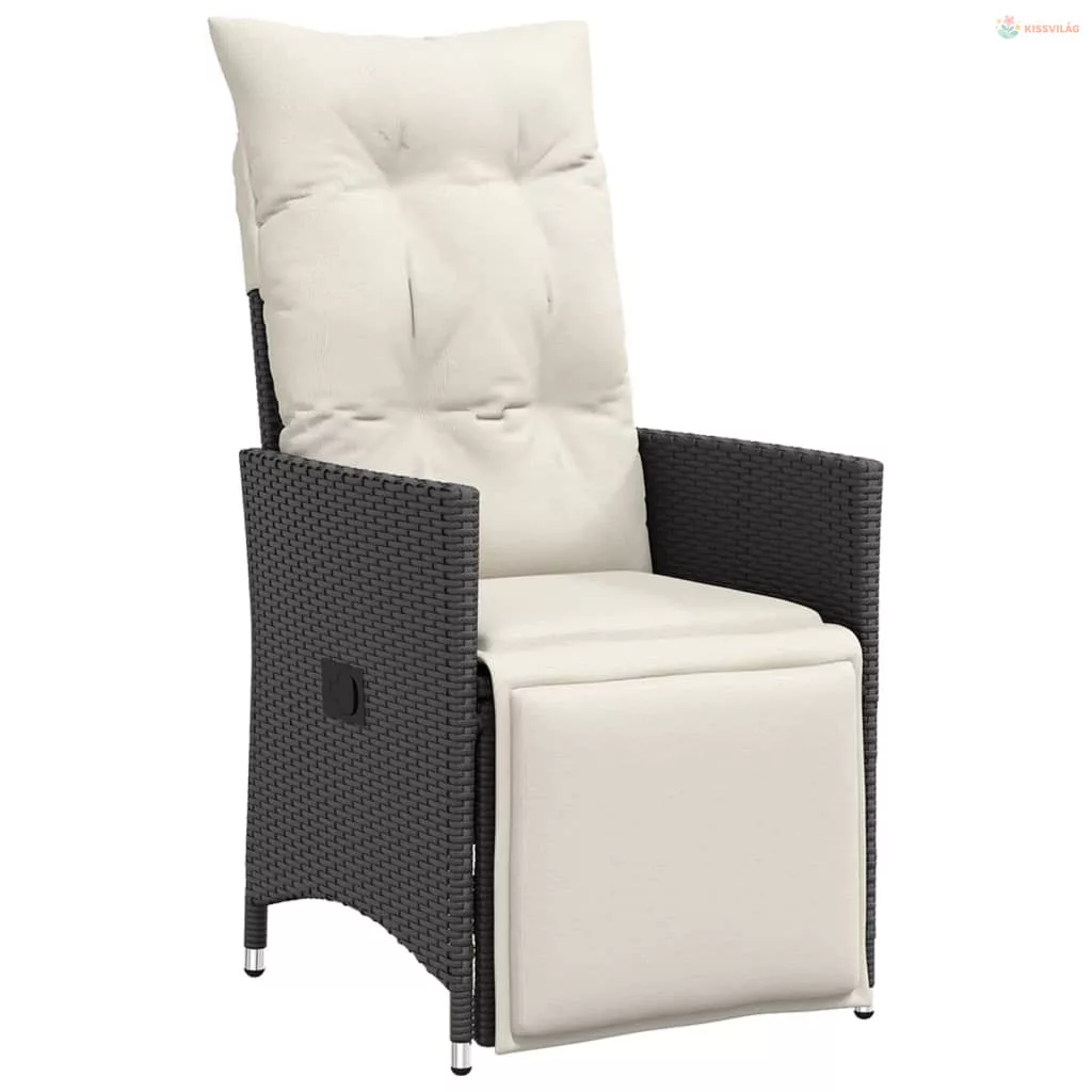 3 részes fekete polyrattan bisztrógarnitúra párnával