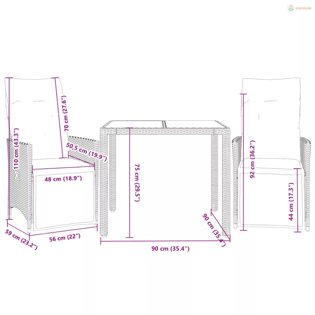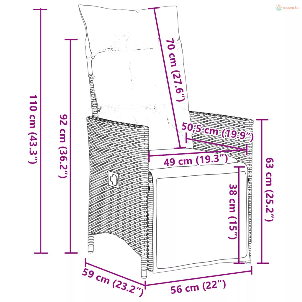 • Ülőmérete: 56 x 59 x 92 cm (Szé x Mé x Ma)