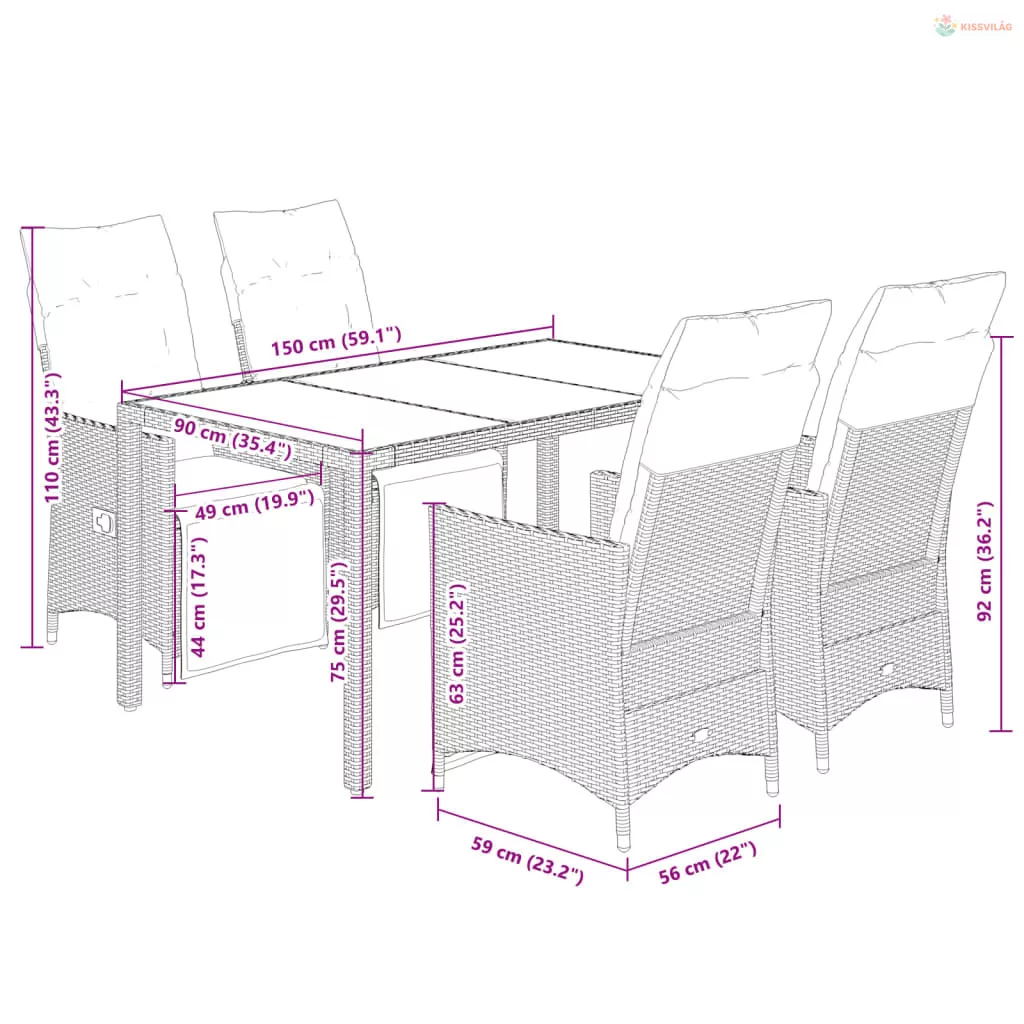 • Ülőmérete: 56 x 59 x 92 cm (Szé x Mé x Ma)