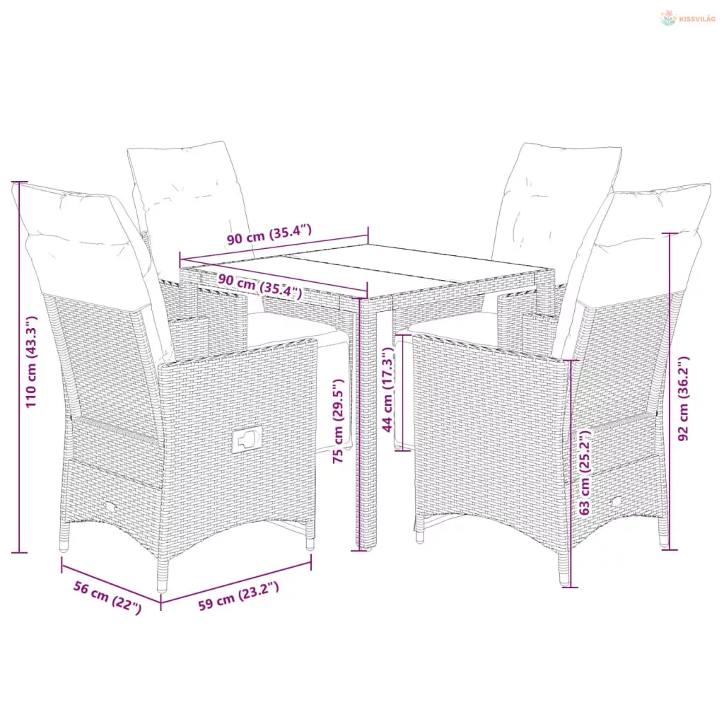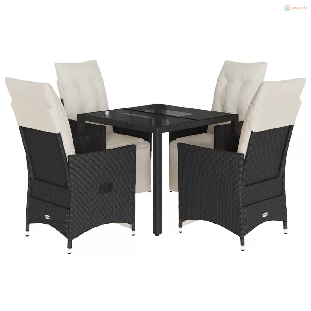 5 részes fekete polyrattan kerti étkezőgarnitúra párnákkal
