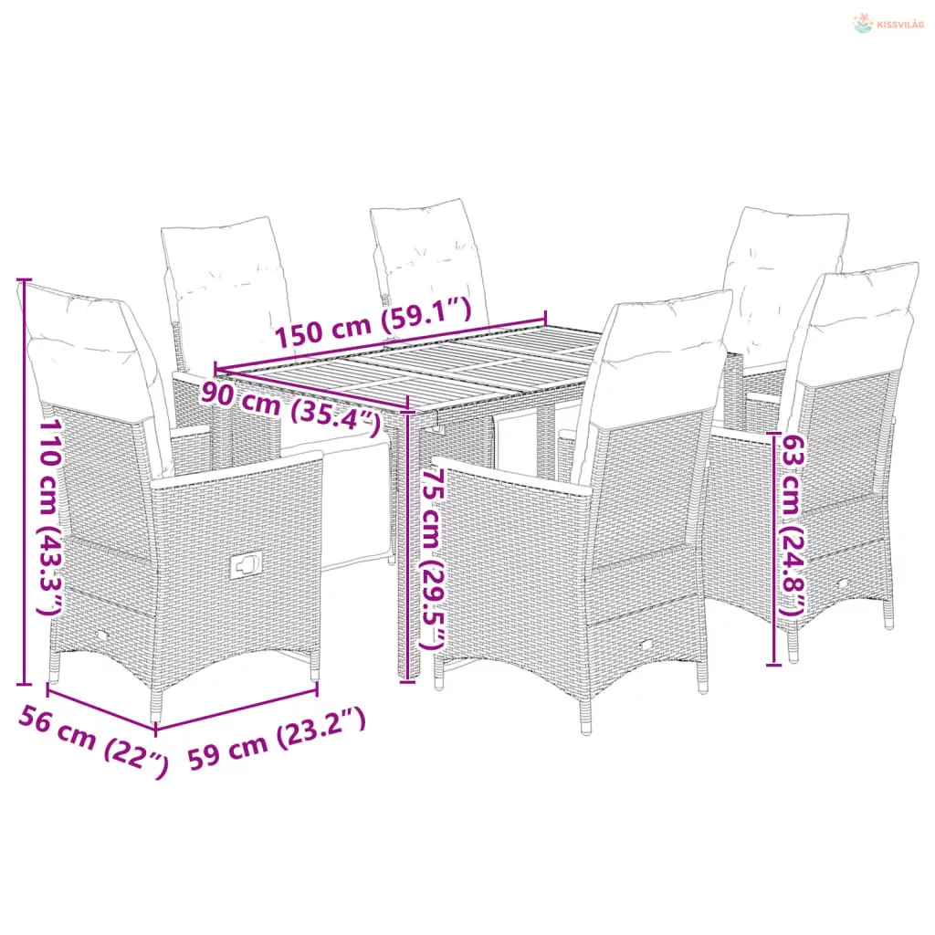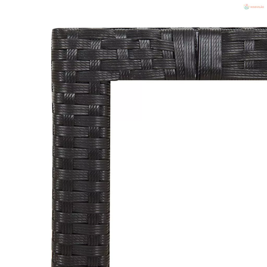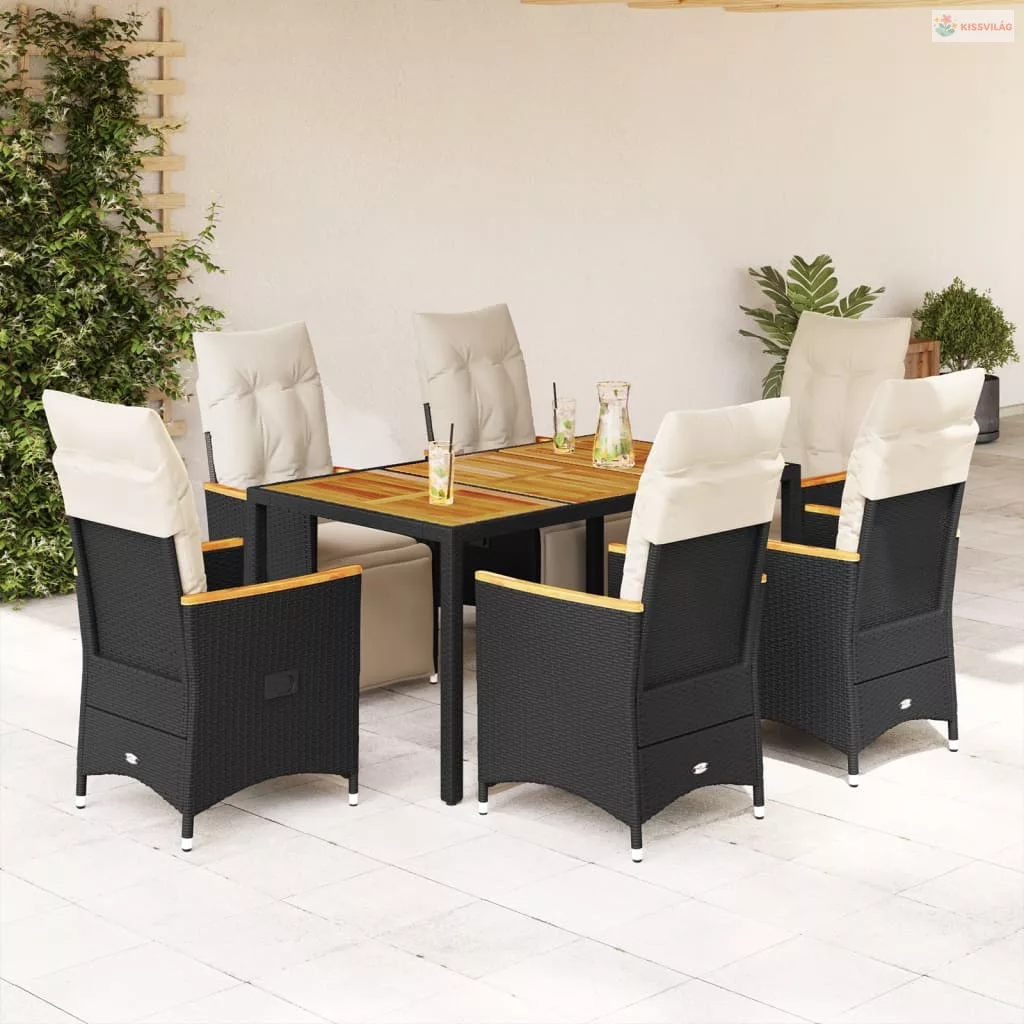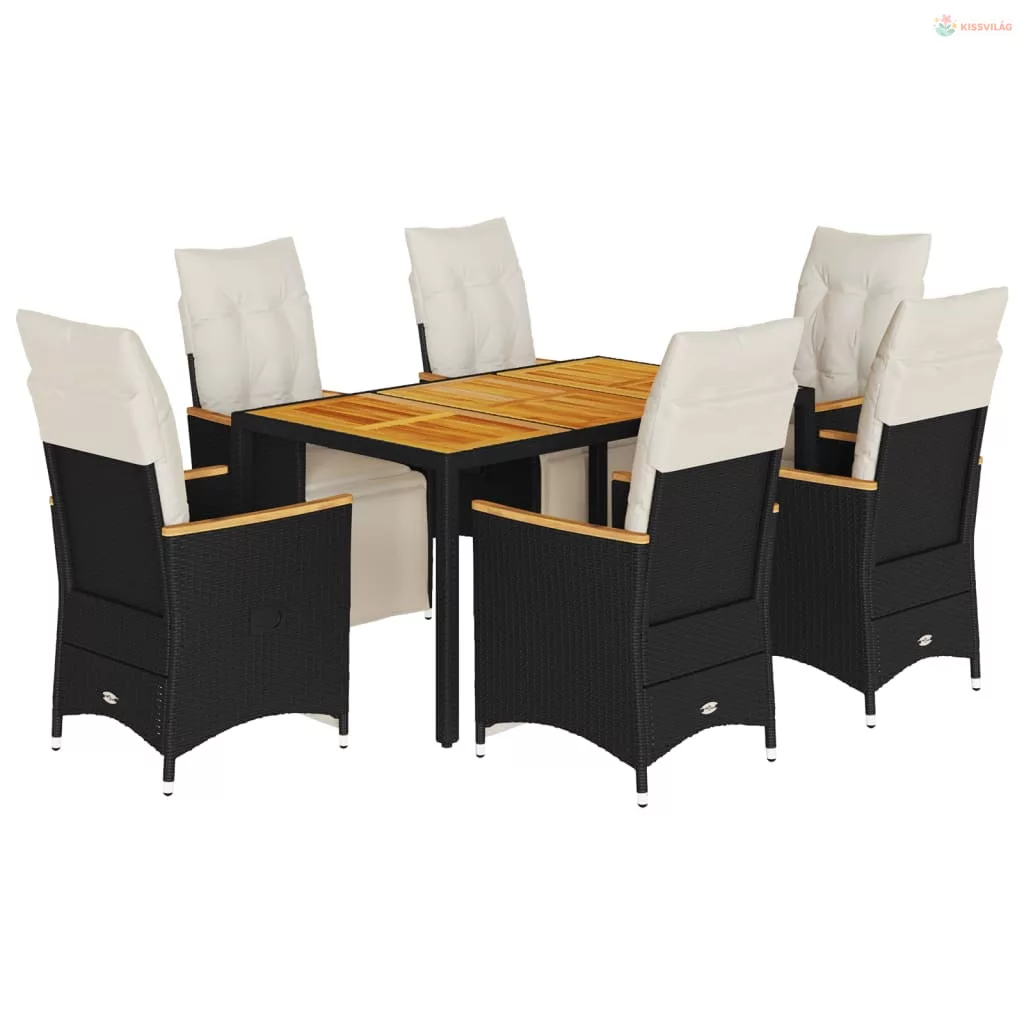 7 részes fekete polyrattan kerti bisztrógarnitúra párnákkal