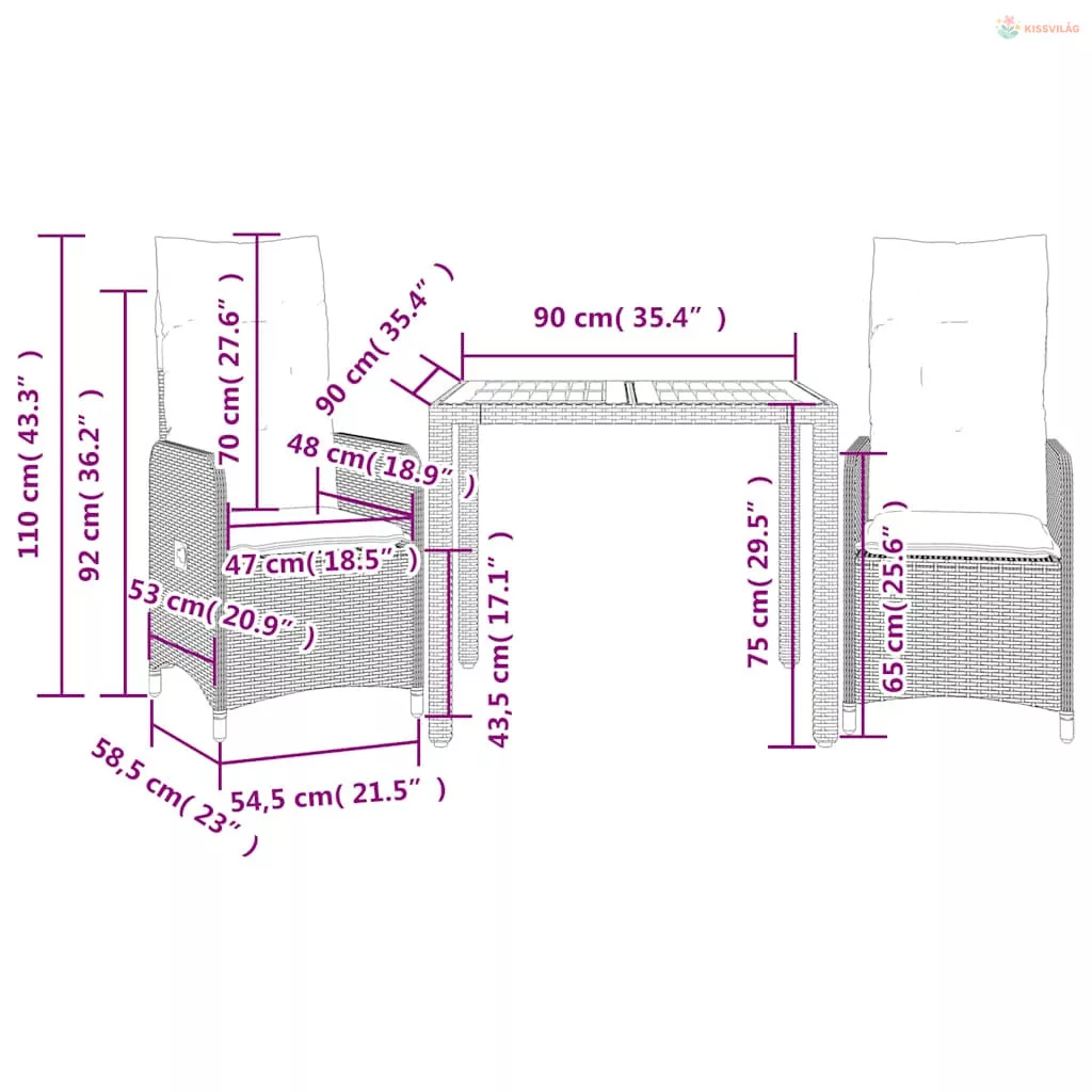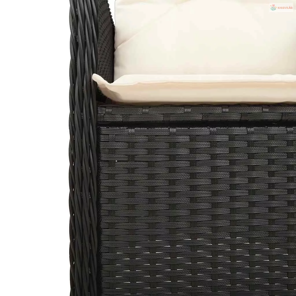 3 részes fekete polyrattan kerti bisztrógarnitúra párnákkal