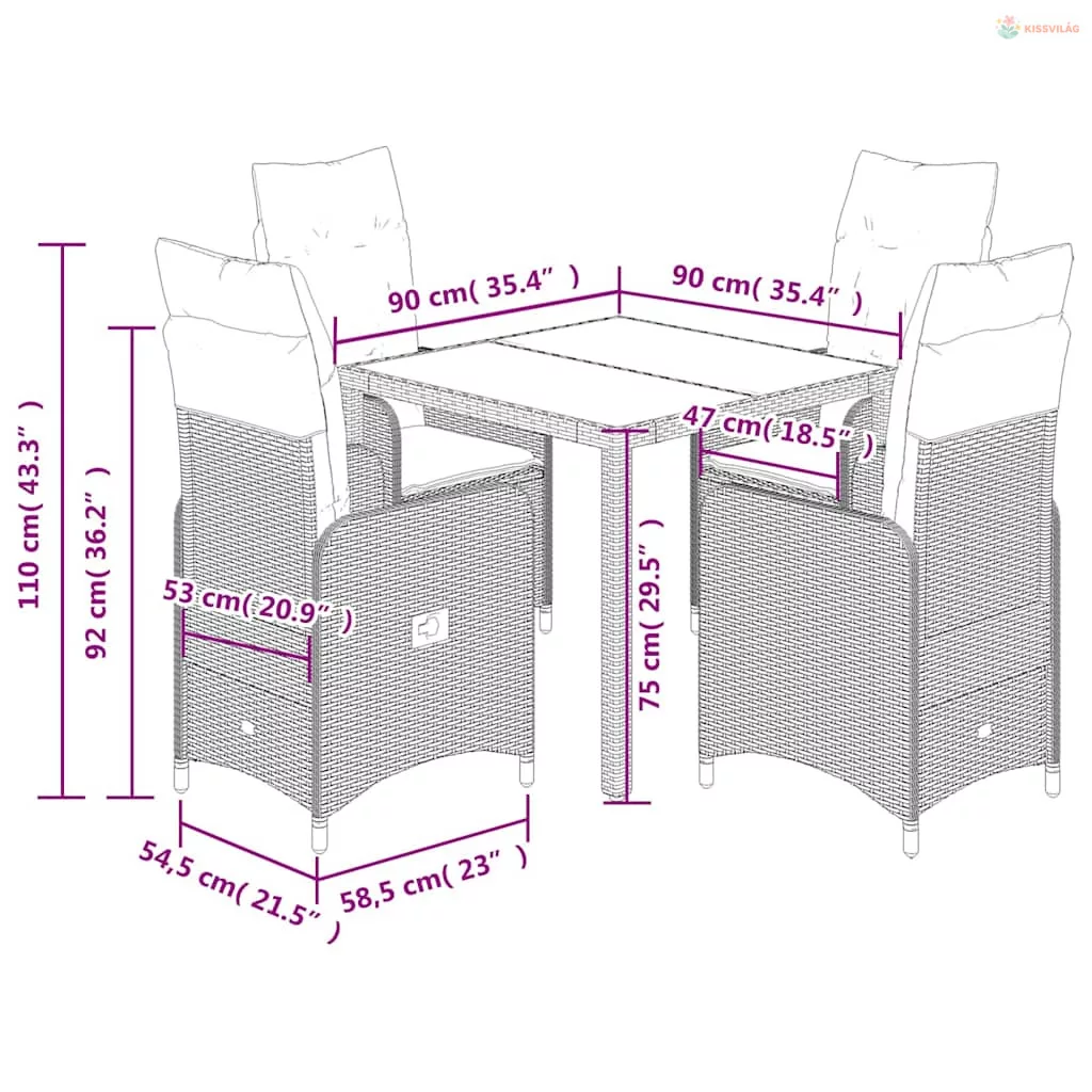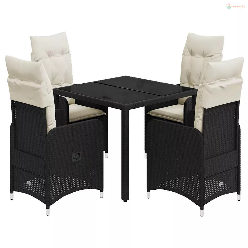 5 részes fekete polyrattan kerti bisztrógarnitúra párnákkal