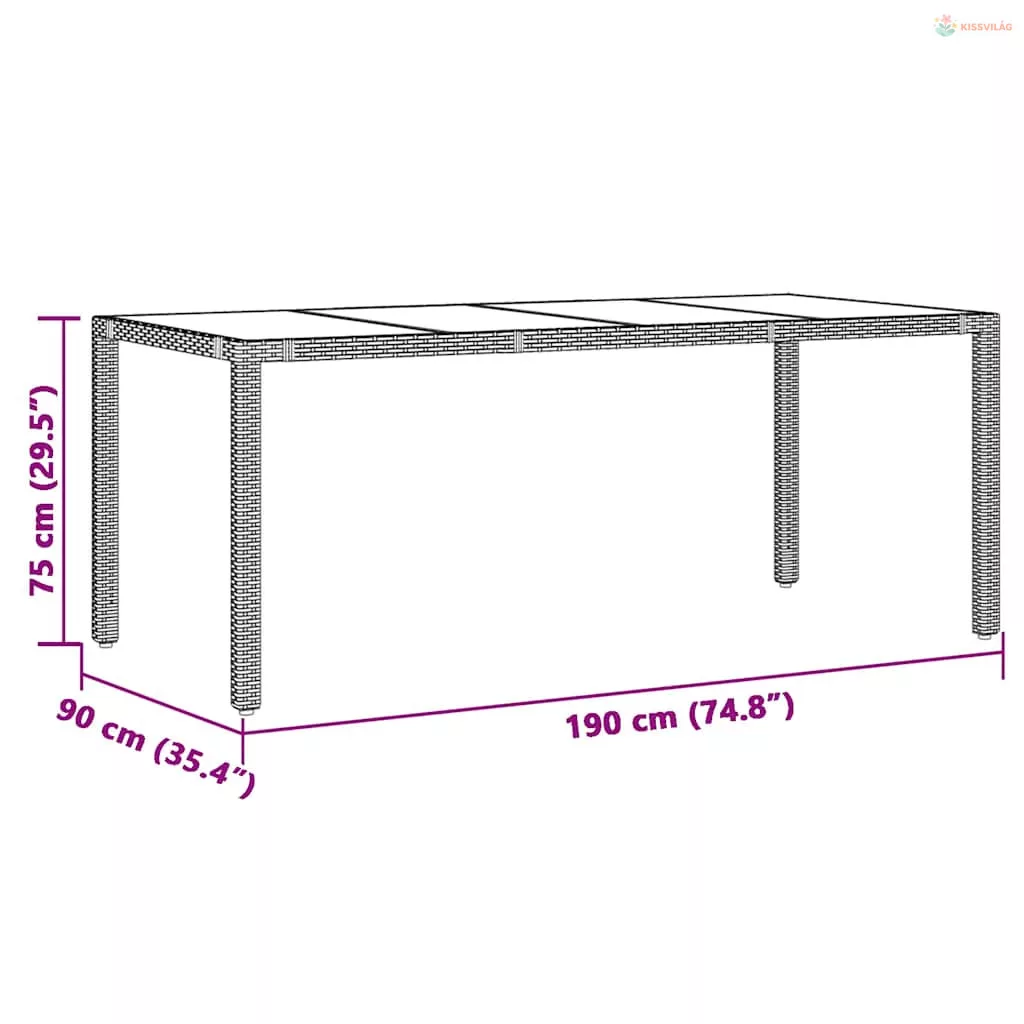 • Anyaga: polietilén rattan, porszórt acélváz, edzett üveg