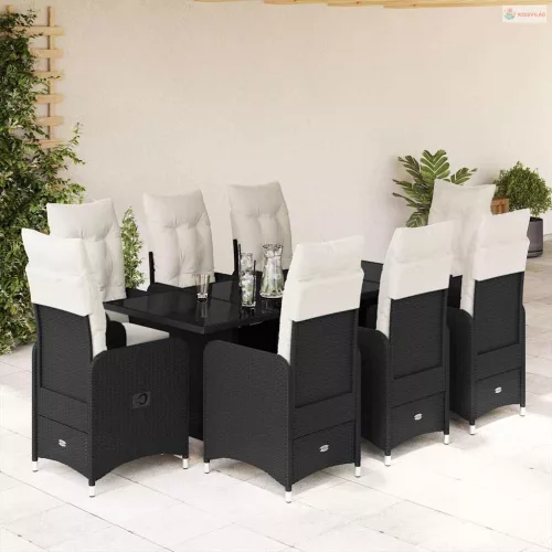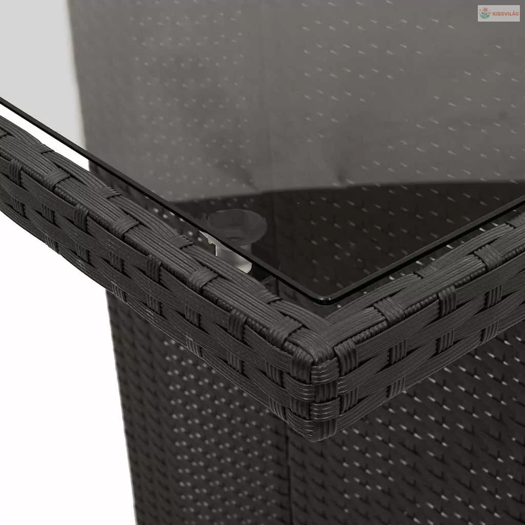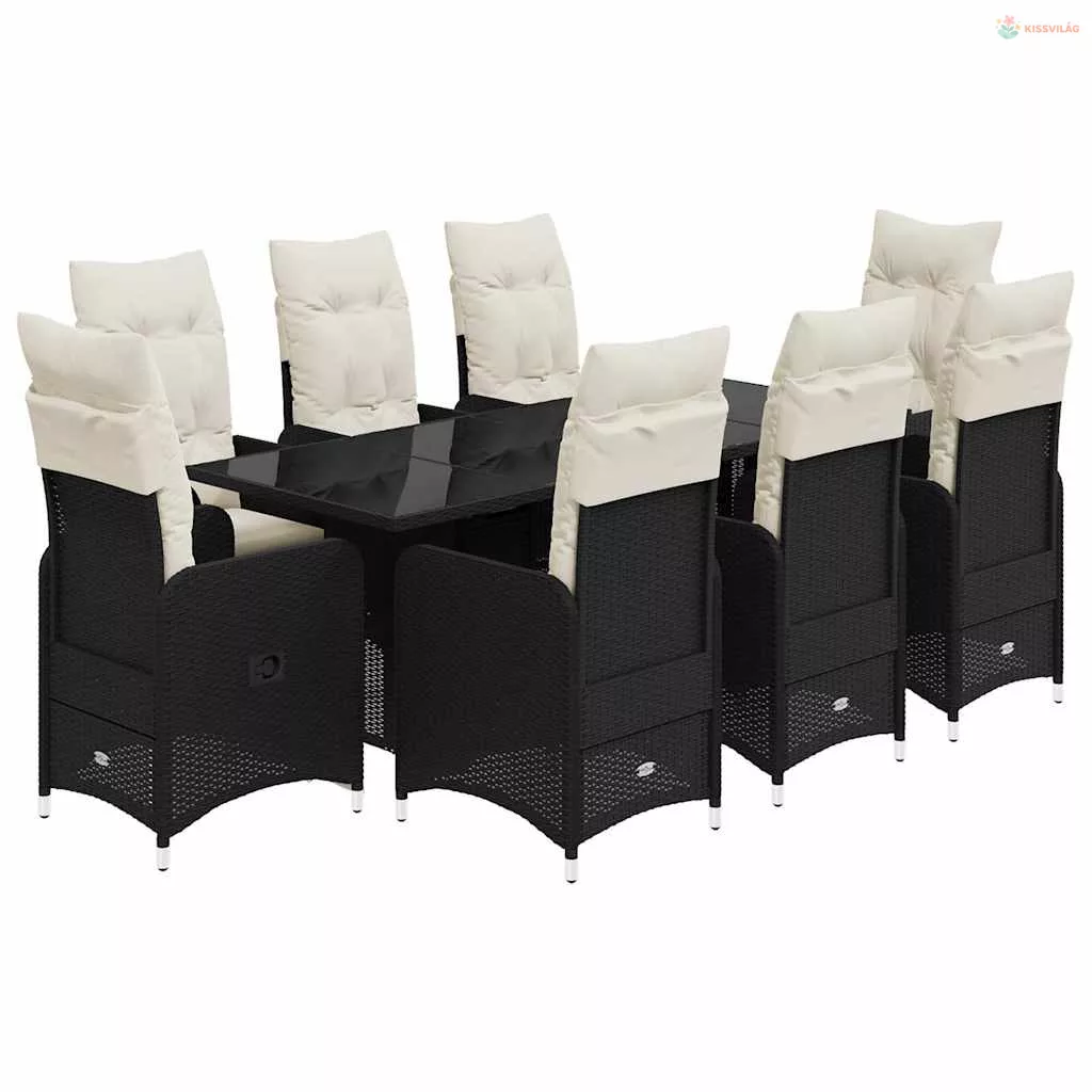 9 részes fekete polyrattan kerti bisztrógarnitúra párnákkal