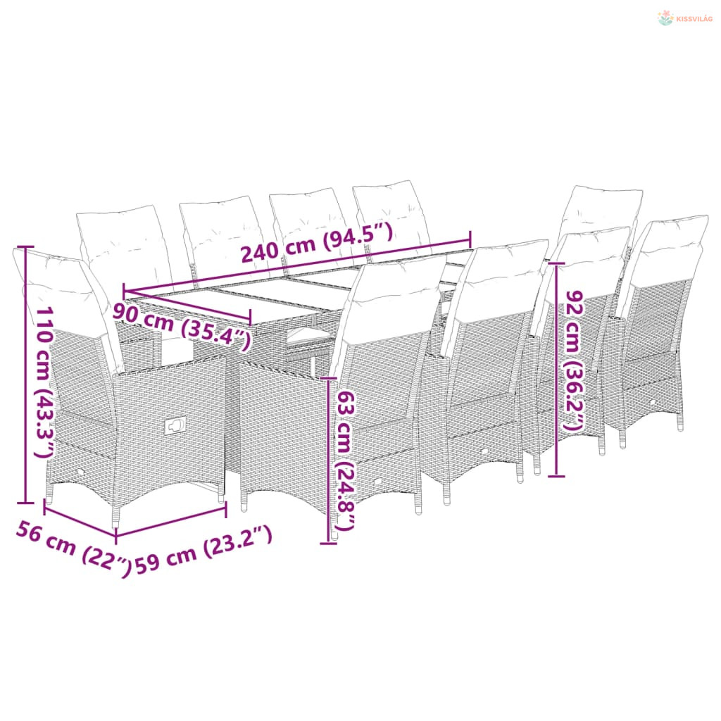 • Anyaga: polietilén rattan, porszórt acélváz, edzett üveg
