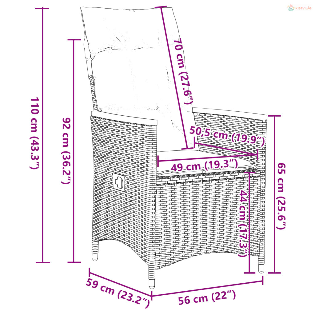 • Ülőmérete: 56 x 59 x 92 cm (Szé x Mé x Ma)