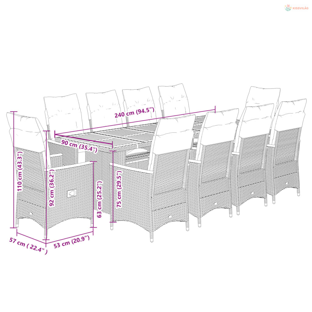 • Anyag: polietilén rattan, porszórt acél, tömör akácfa olajos felületkezeléssel