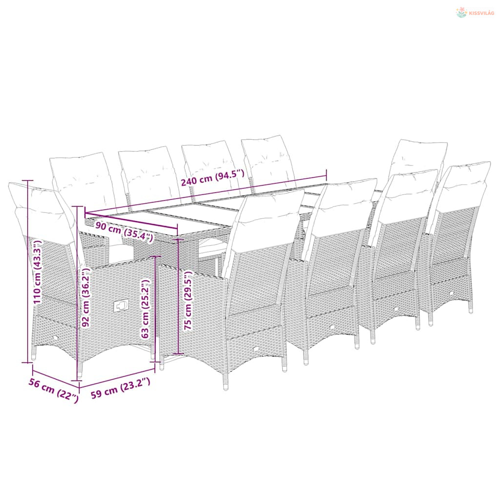 • Anyaga: polietilén rattan, porszórt acélváz, edzett üveg
