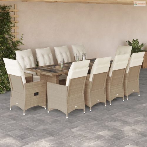 11 részes bézs polyrattan kerti bisztrógarnitúra párnákkal