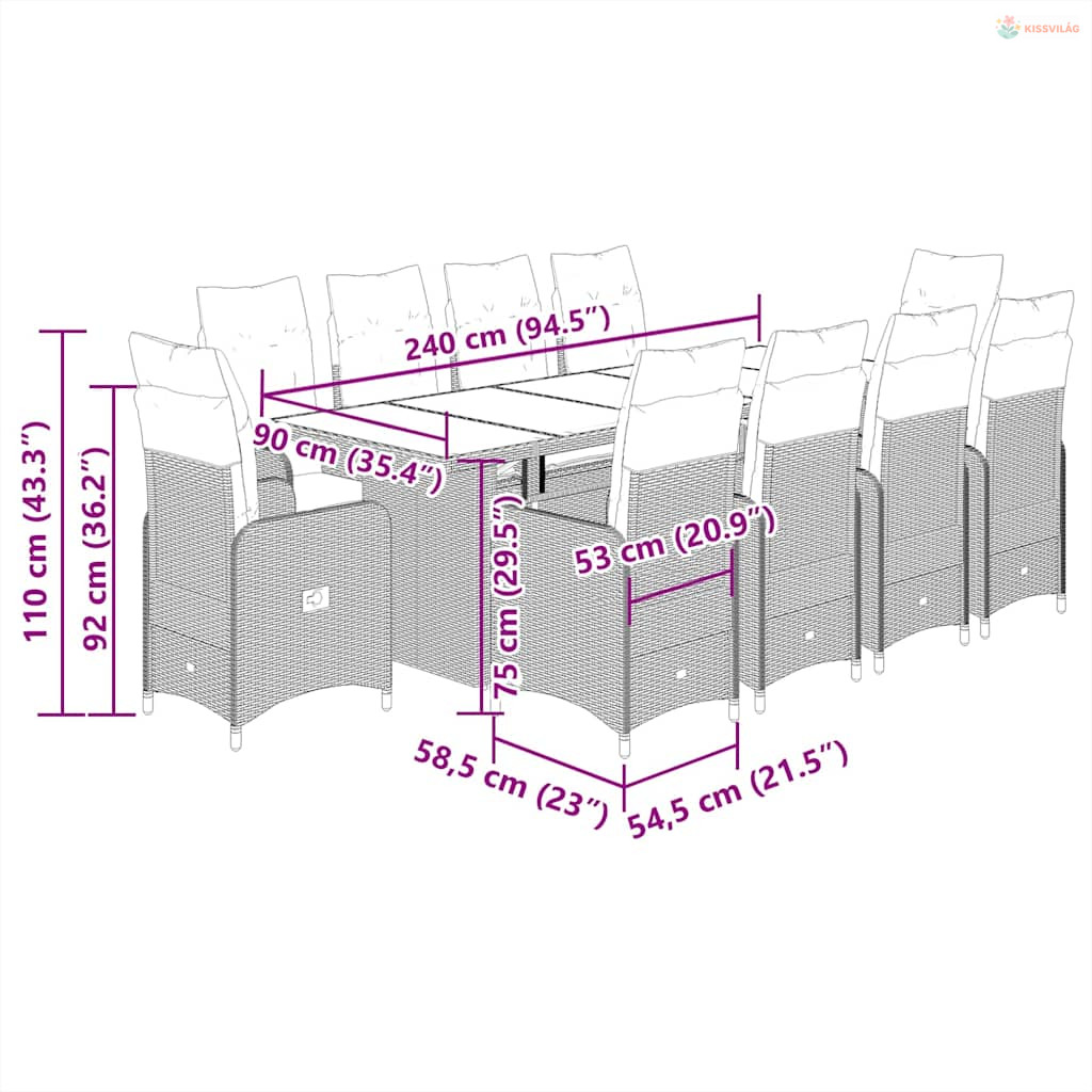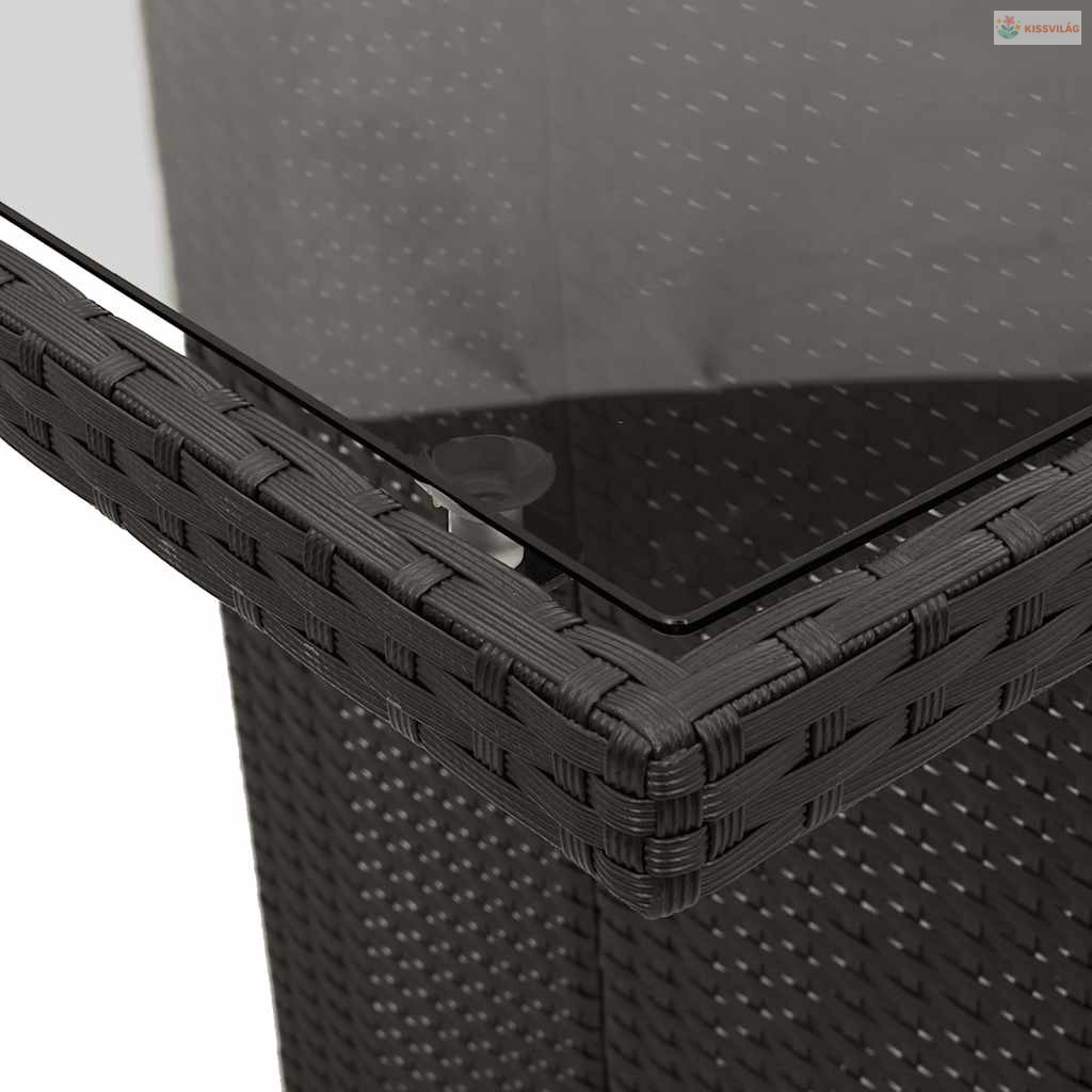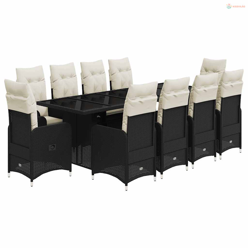 11 részes fekete polyrattan kerti bisztrógarnitúra párnákkal