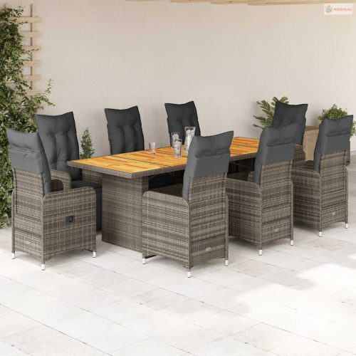 9 részes szürke polyrattan kerti bisztrógarnitúra párnákkal