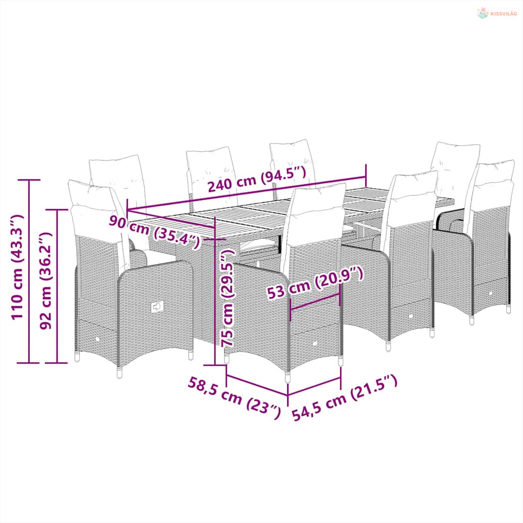 • Anyag: polietilén rattan, porszórt acél, tömör akácfa olajos felületkezeléssel