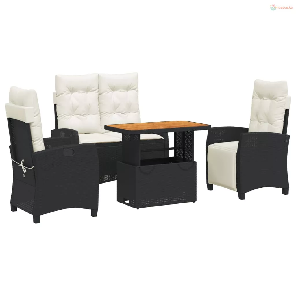 4 részes fekete polyrattan kerti étkezőszett párnákkal