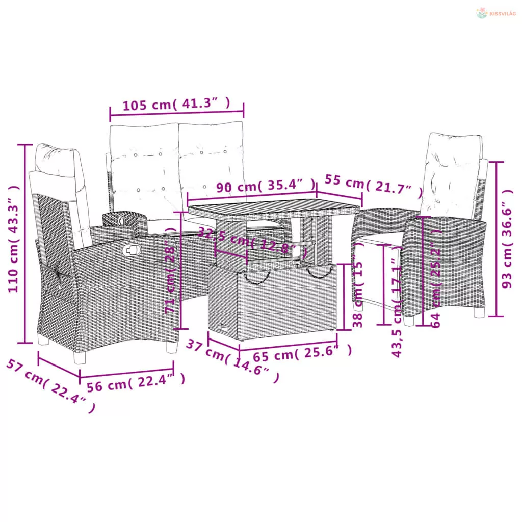 • Anyag: PE rattan, porszórt acél, tömör akácfa olajos felületkezeléssel