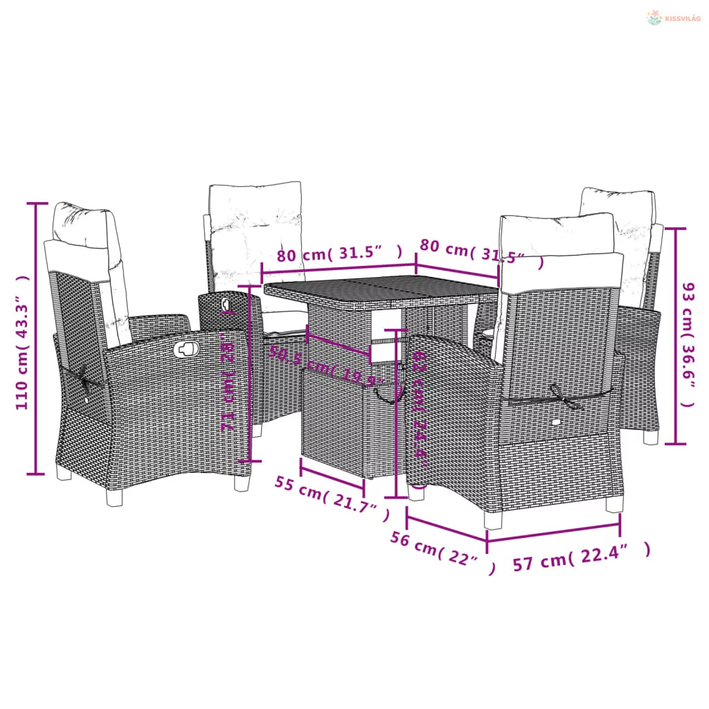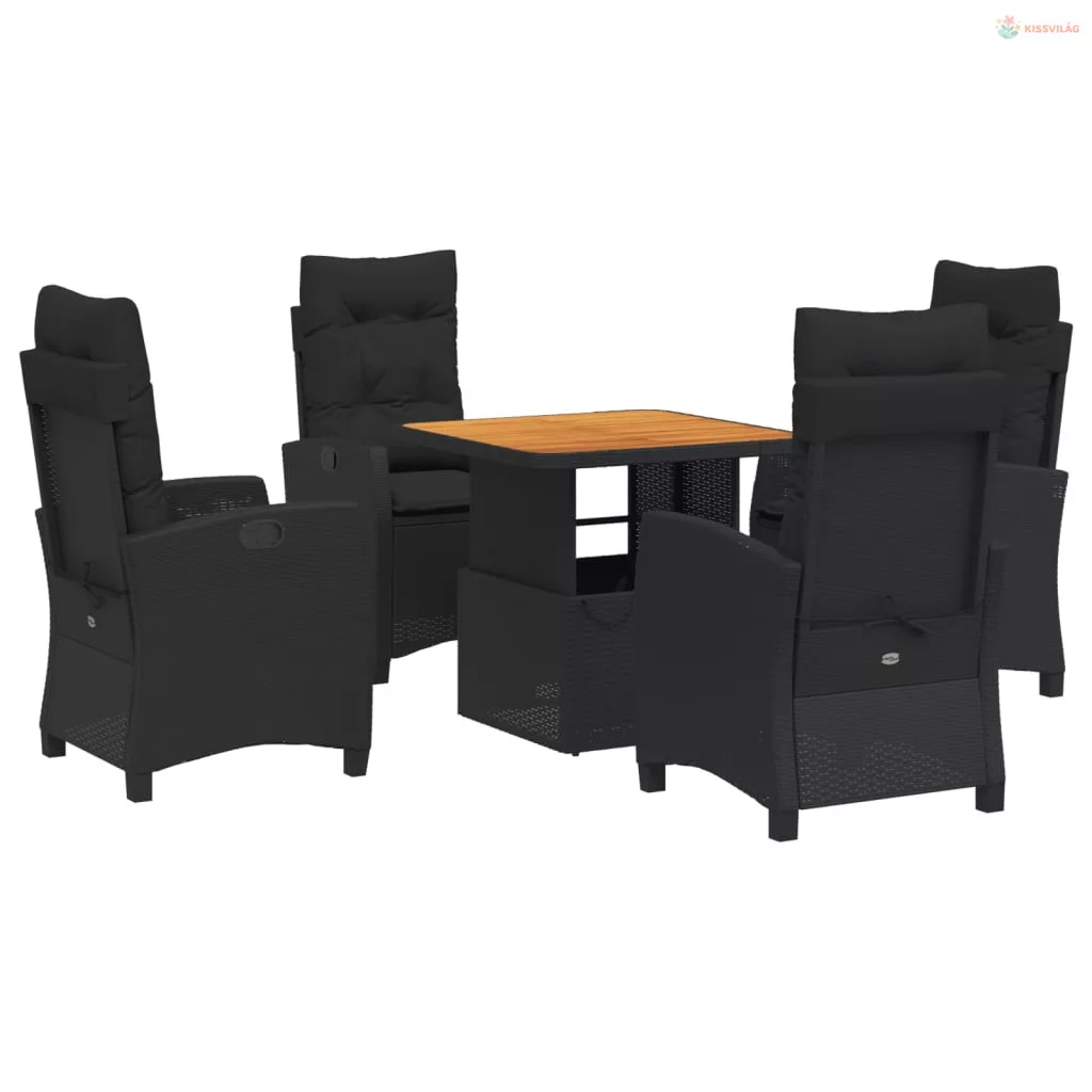 5 részes fekete polyrattan kerti étkezőgarnitúra párnákkal