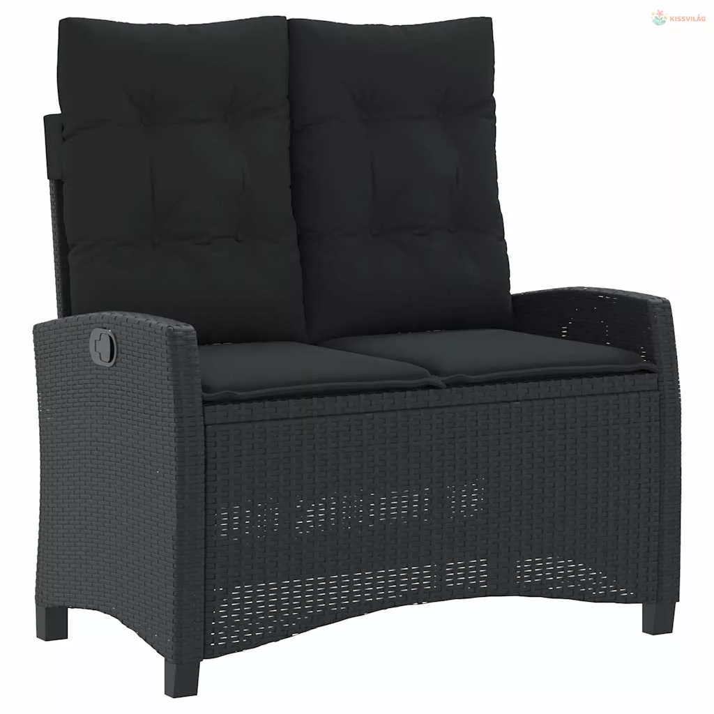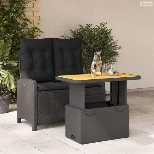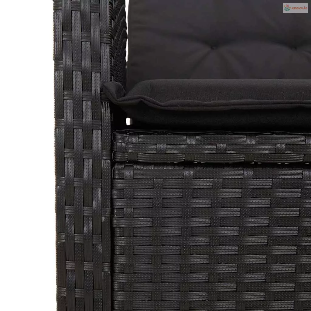 2 részes fekete polyrattan kerti étkezőgarnitúra párnával