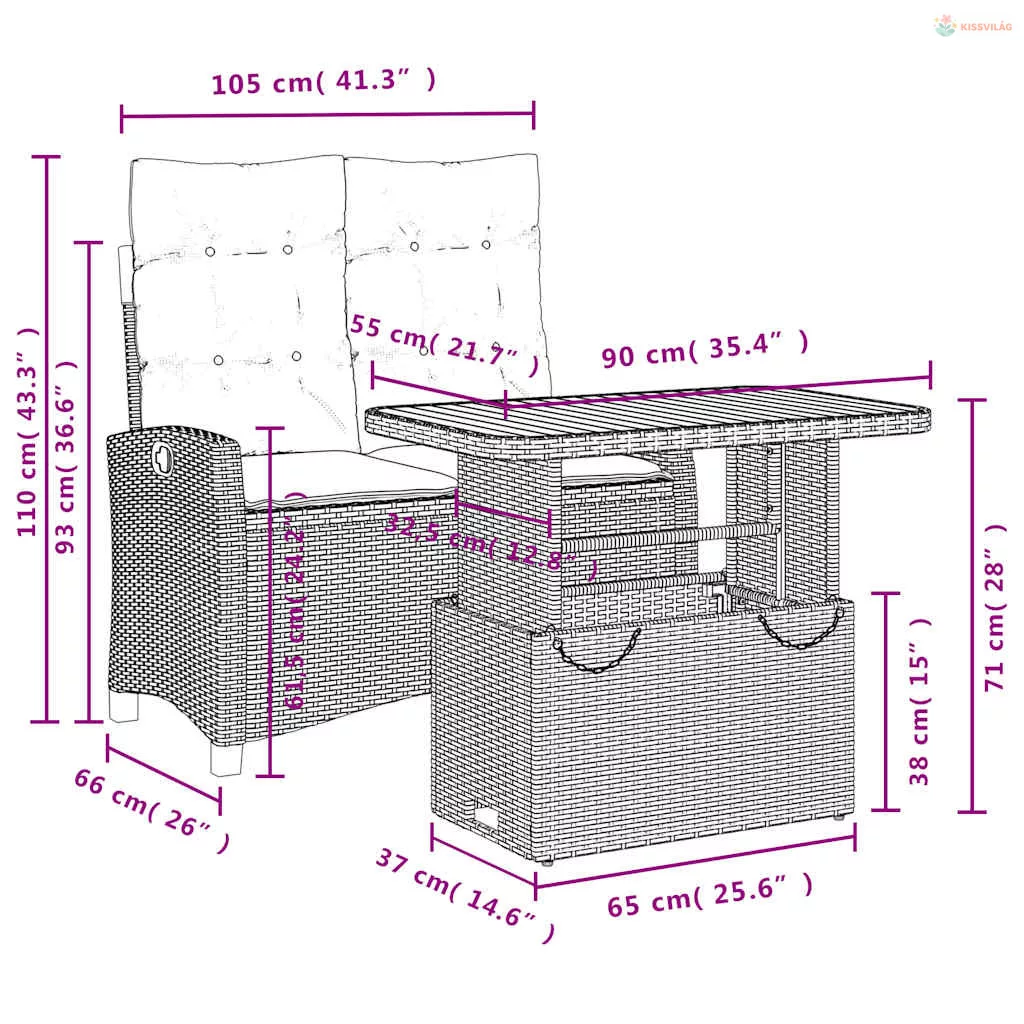 • Ülőmérete: 105 x 66 x 93 cm (Szé x Mé x Ma)