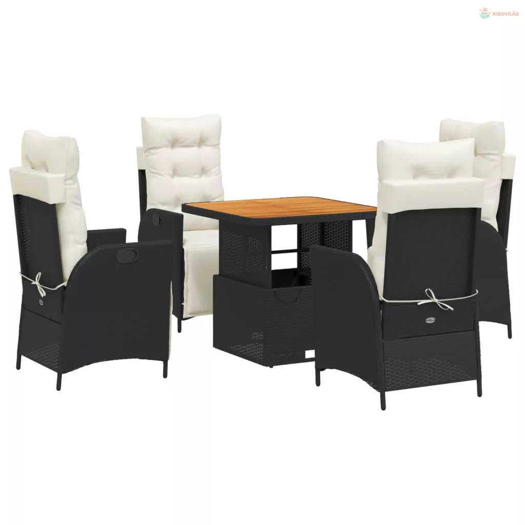 5 részes fekete polyrattan kerti étkezőgarnitúra párnákkal