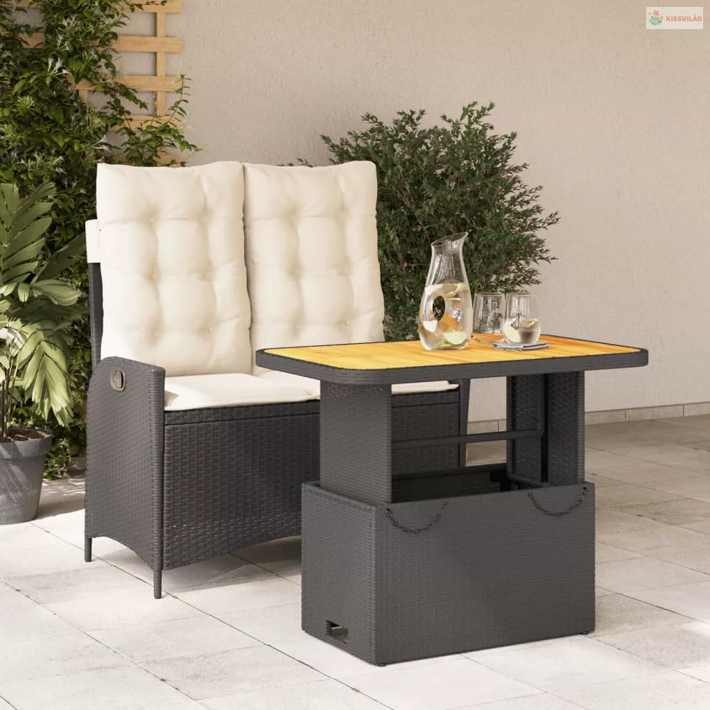 2 részes fekete polyrattan kerti étkezőgarnitúra párnával