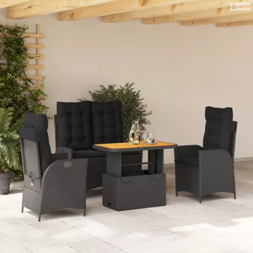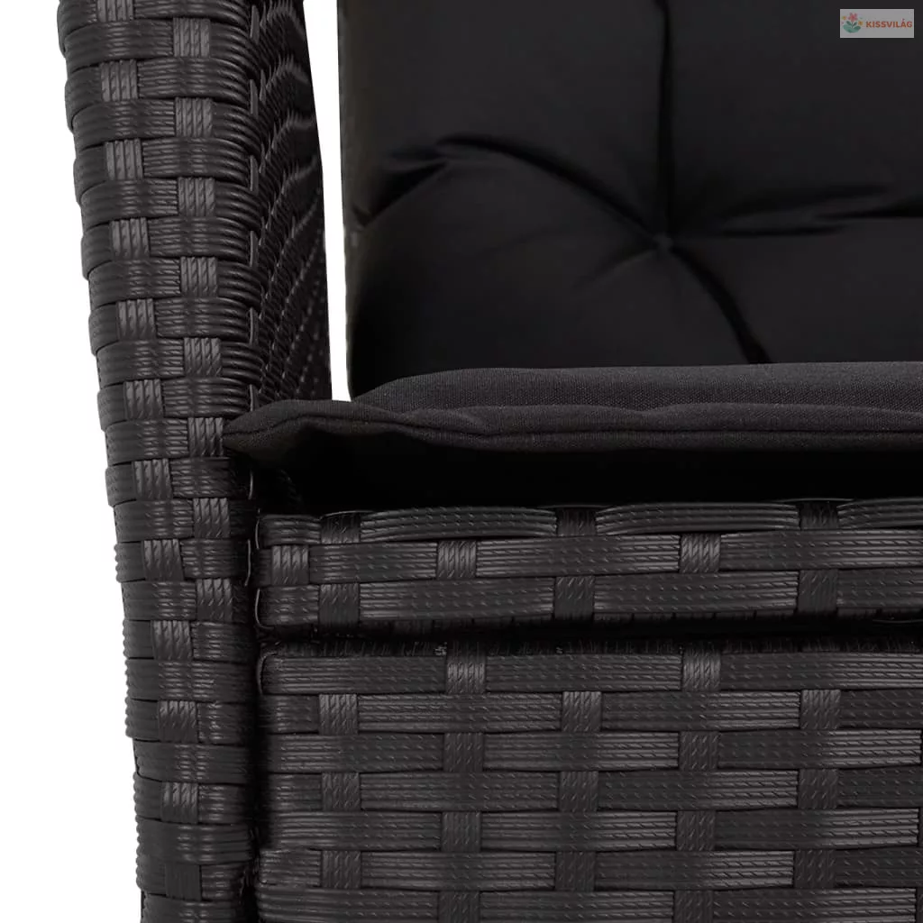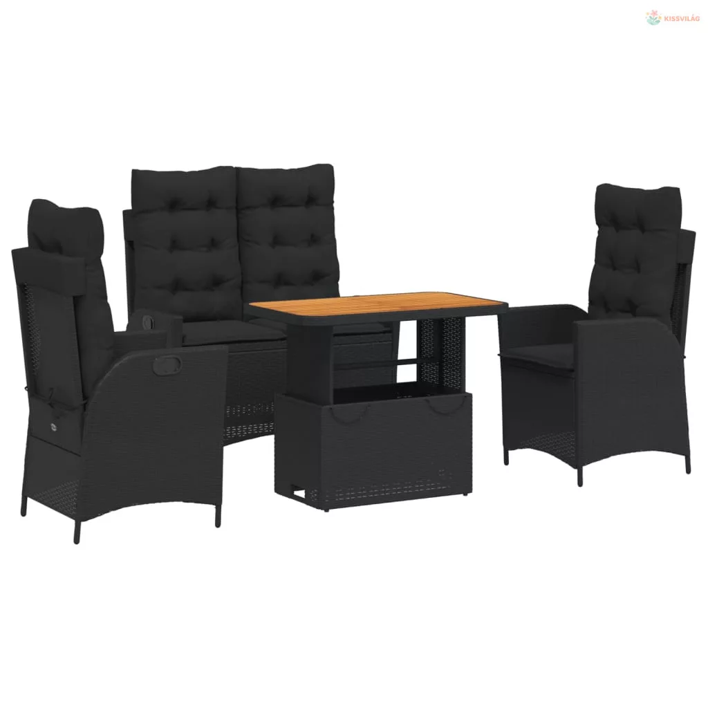 4 részes fekete polyrattan kerti étkezőszett párnákkal