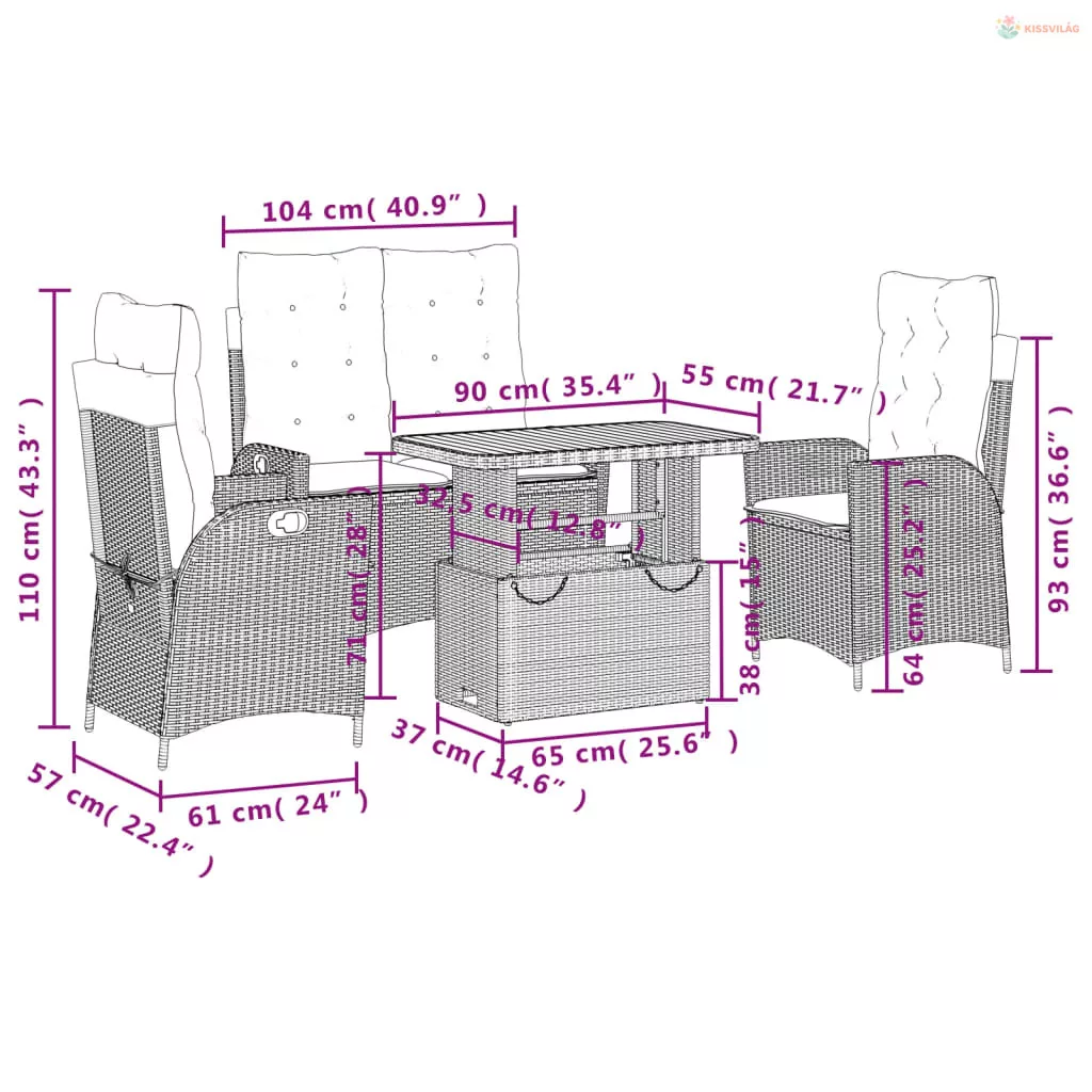 • Ülőmérete: 104 x 59 x 93 cm (Szé x Mé x Ma)
