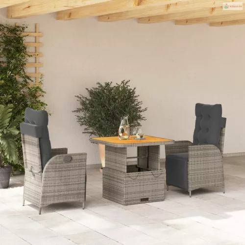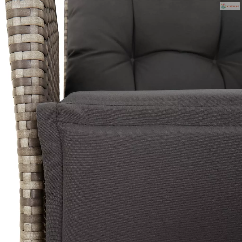 3 részes szürke polyrattan kerti étkezőgarnitúra párnával