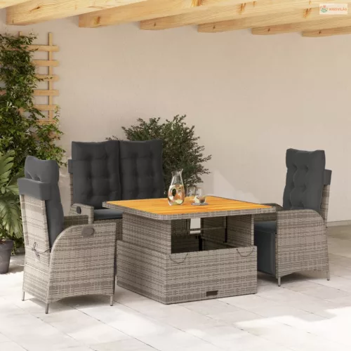 4 részes szürke polyrattan kerti étkezőszett párnával