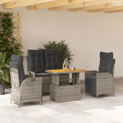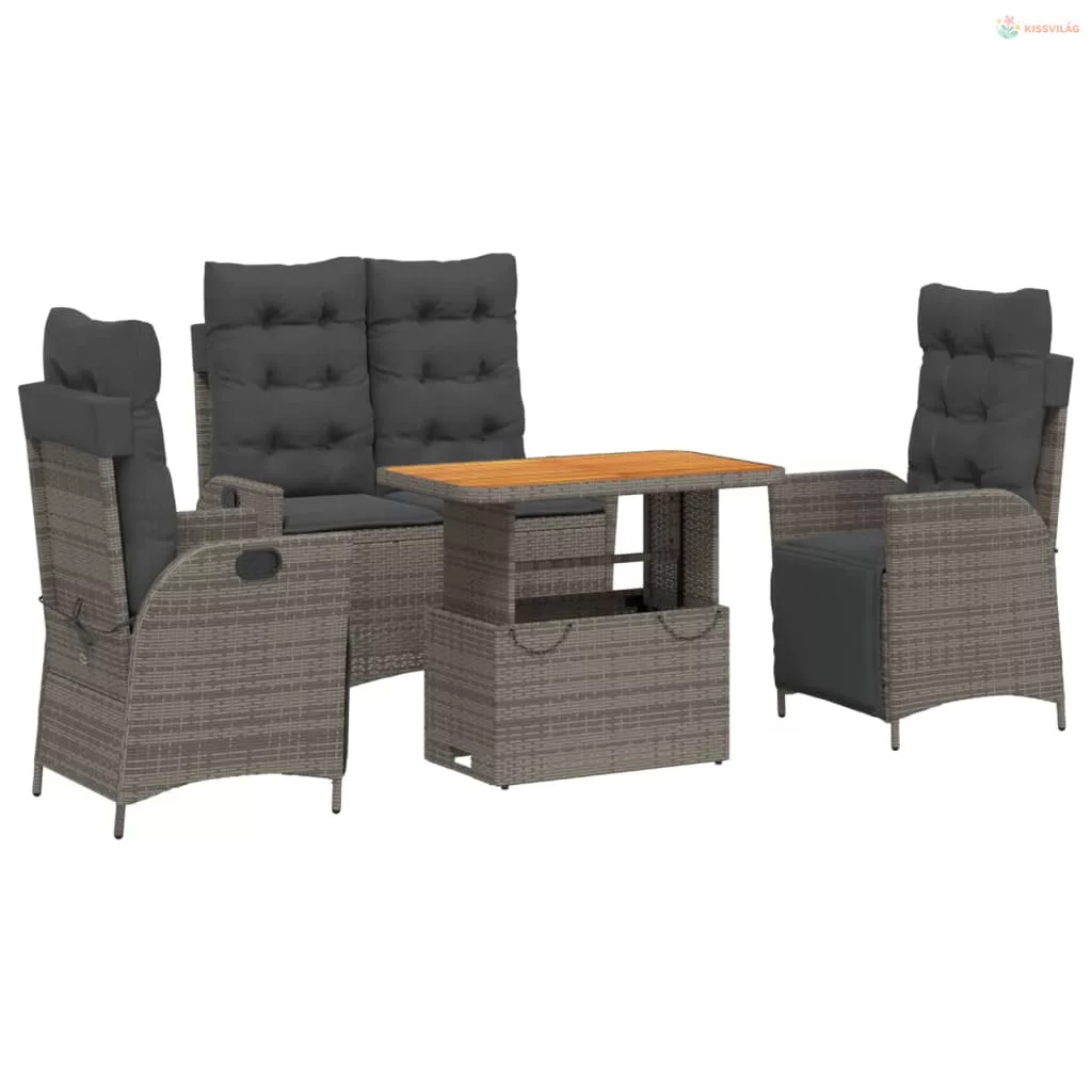 4 részes szürke polyrattan kerti étkezőszett párnával