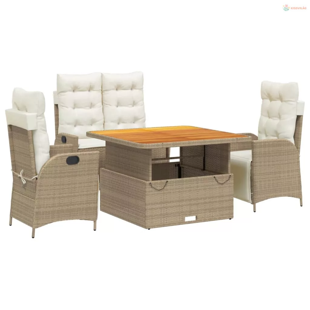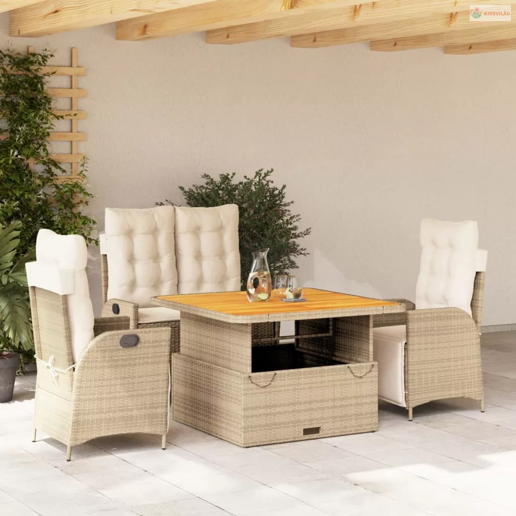 4 részes bézs polyrattan kerti étkezőgarnitúra párnákkal