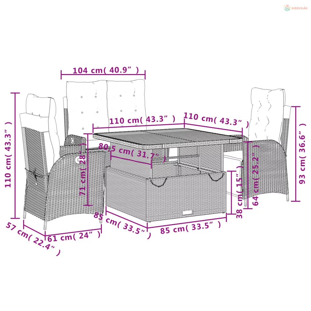 Ez a kerti étkezőgarnitúra remek választás szabadtéri étkezéshez, vagy csak pihenéshez a kertben, a hátsó udvarban vagy a teraszon.