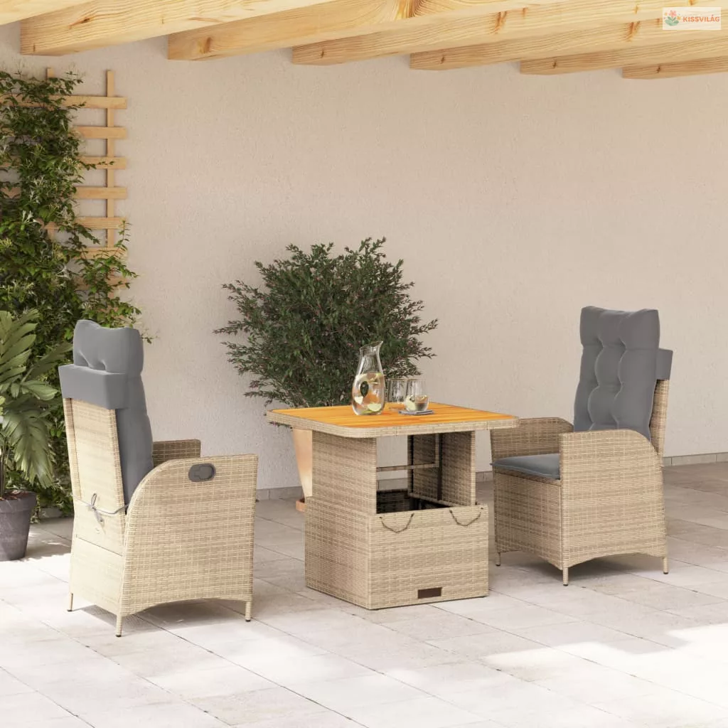3 részes bézs polyrattan kerti étkezőgarnitúra párnákkal