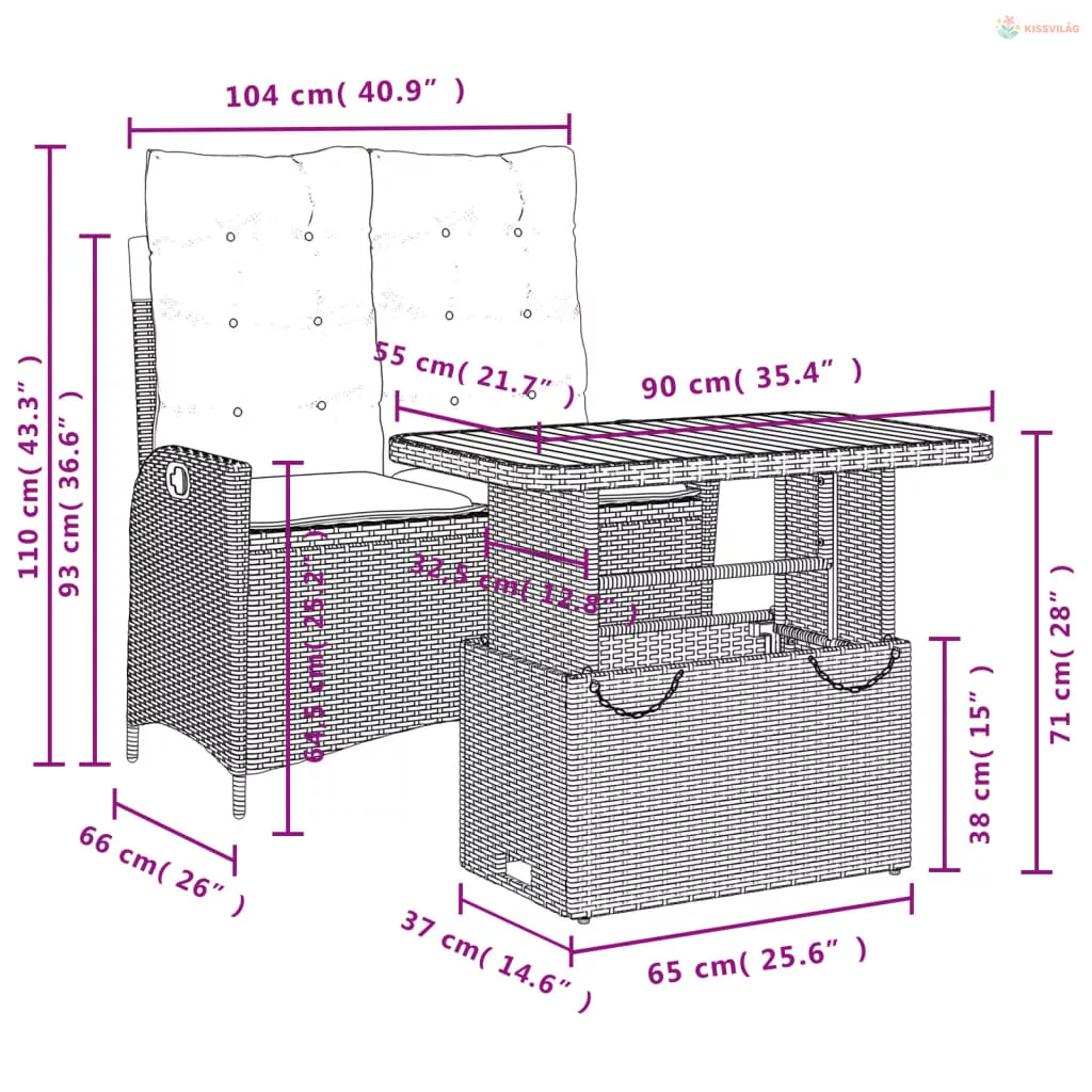 • Ülőmérete: 104 x 59 x 93 cm (Szé x Mé x Ma)
