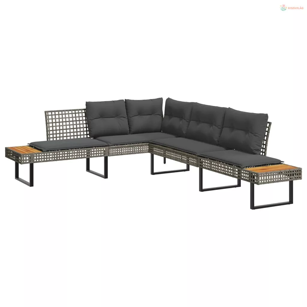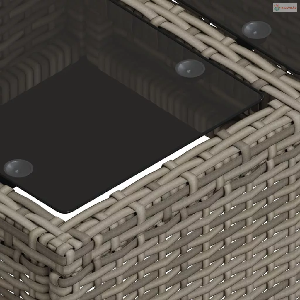 2 részes szürke polyrattan és üveg kerti ülőgarnitúra párnákkal