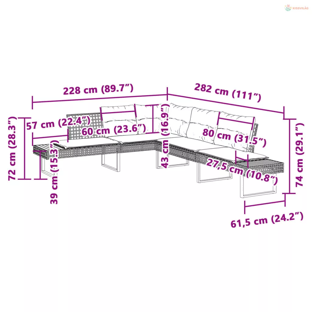 • Teljes mérete: 282 x 228 x 74 cm (Szé x Mé x Ma)