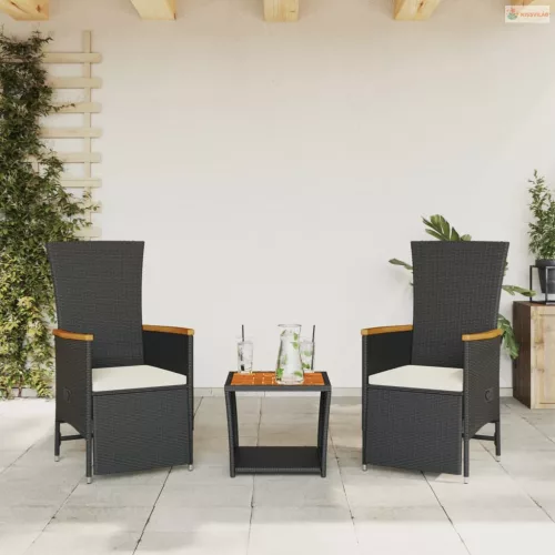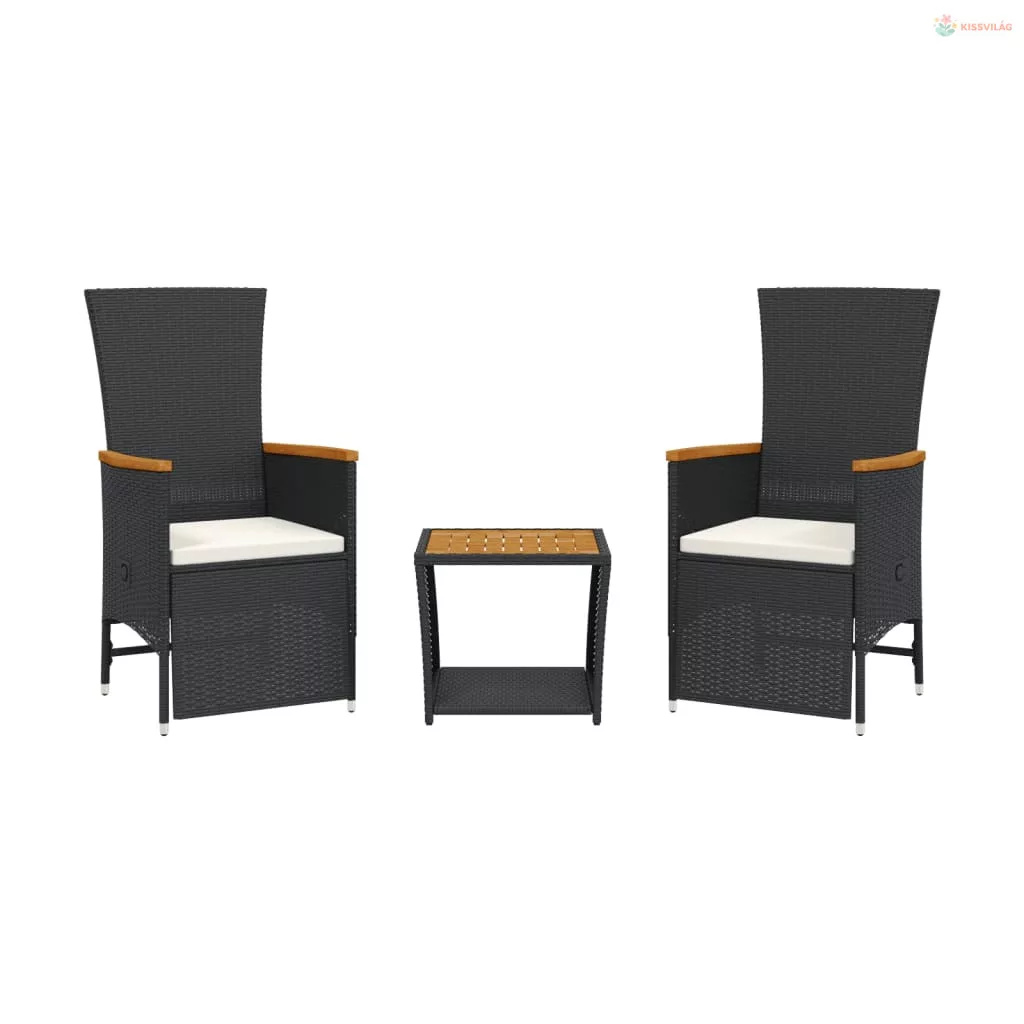 3 részes fekete polyrattan kerti étkezőgarnitúra párnákkal